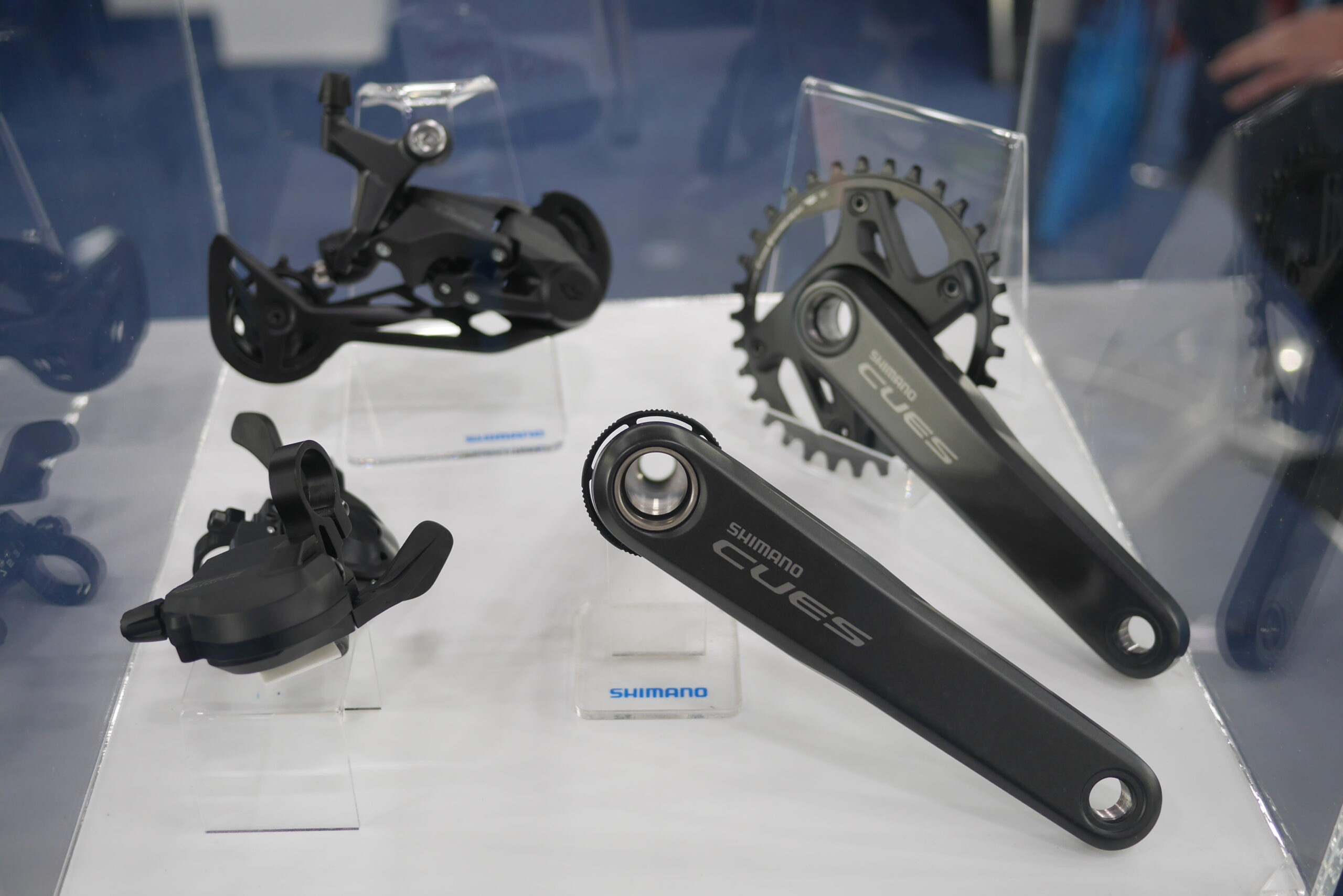 We got to see some Shimano CUES stuff in the flesh. We also cleared up some info about what CUES is, and isn’t. Essentially all CUES stuff is very cross compatible with CUES stuff; cable-pull amounts and inter-sprocket distances are shared. But, as regards compatibility with existing pre-CUES stuff, not so much. The general vibe is that Shimano’s sub-Deore groupsets are now a sea of inter-compatible CUES products. Great for OEM and relatively casual/beginner cyclists. Anything Deore-and-above is the same as it ever was. The curveball remains LinkGlide. Surely Shimano must have plans to do (more) LinkGlide stuff in the SLX/XT market? When we find out, we’ll let you know! Also, yep CUES marque brake levers have that parallel-to-the-bars design which is, at least partly, due to thru-headset routing.