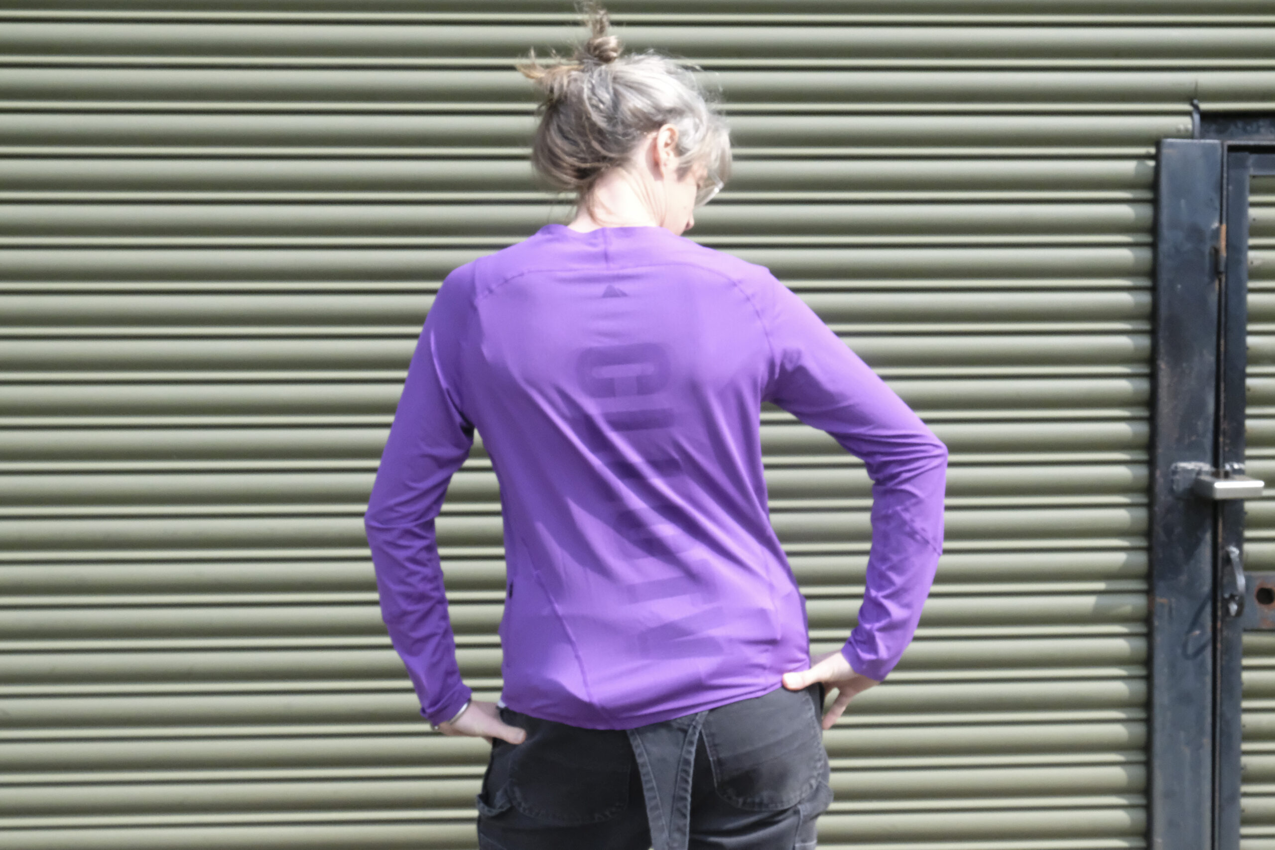 Subtly branded jersey with small zip pocket on the left (apparently that’s the right place for lift tickets, if you live in that sort of a place). Nice snug neckline and sleeve cuffs. Available in a selection of colours, with all the colours being available in men’s and women’s cuts. The CLLCTV branding on the back doesn’t hold mud spatters the same as the jersey fabric, giving a very artistic relief effect on a muddy ride.