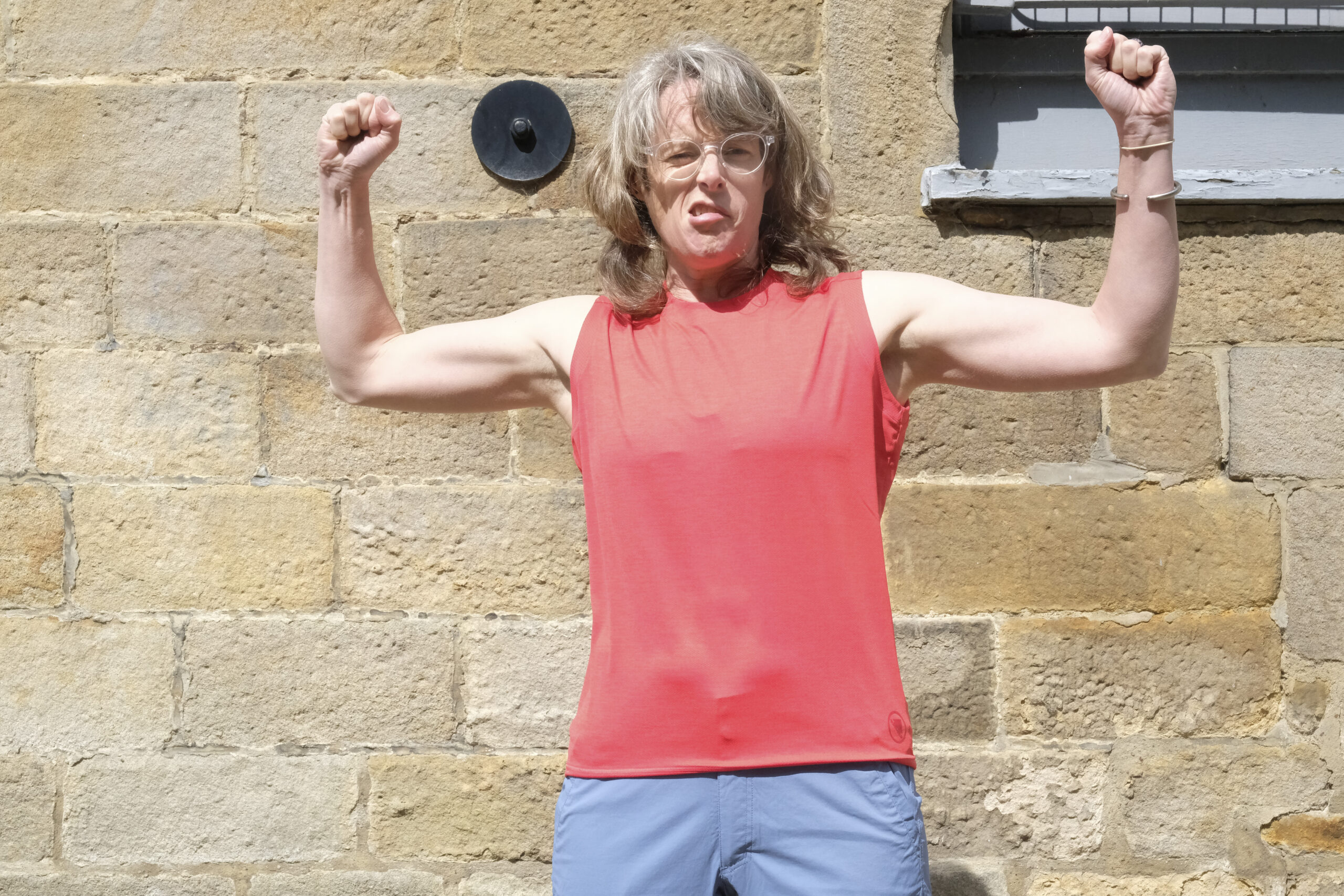 Made with a minimum of 50% recycled polyester yarn, and Endura will plant a tree when you buy it. It’s much redder than it looks here. And Hannah is scarier.