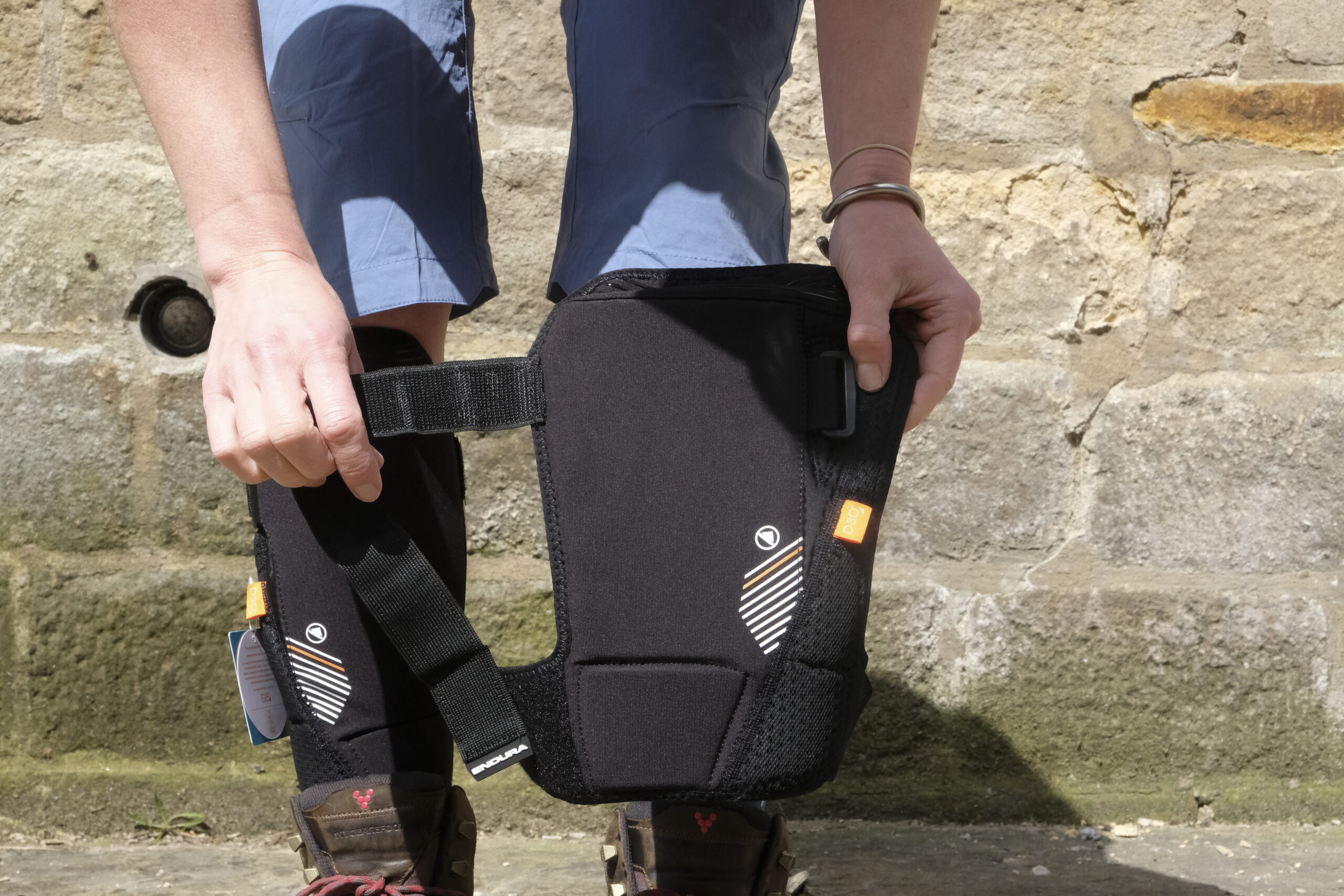 These are the new D30 shin pads from Endura, in size L-XL. Many of you seemed oblivious to the potential need for such protection until Hannah wrote about thin shin skin, repeated scars, and gaping wounds. As well as scar tissue, as you age your skin loses its elasticity, leaving your skin more vulnerable to bashes and scrapes. And lower leg injuries can take an especially long while to heal up. Which is very annoying when you want to ride your bike. These shin pads are super light weight, and easy to put on or take off without removing shoes. Silicone gripper at the top should help them play nice with your kneepads too, and keep everything in place. Plenty of ventilation makes them look like they shouldn’t be too sweaty either. Protection only works if you’re actually wearing it!