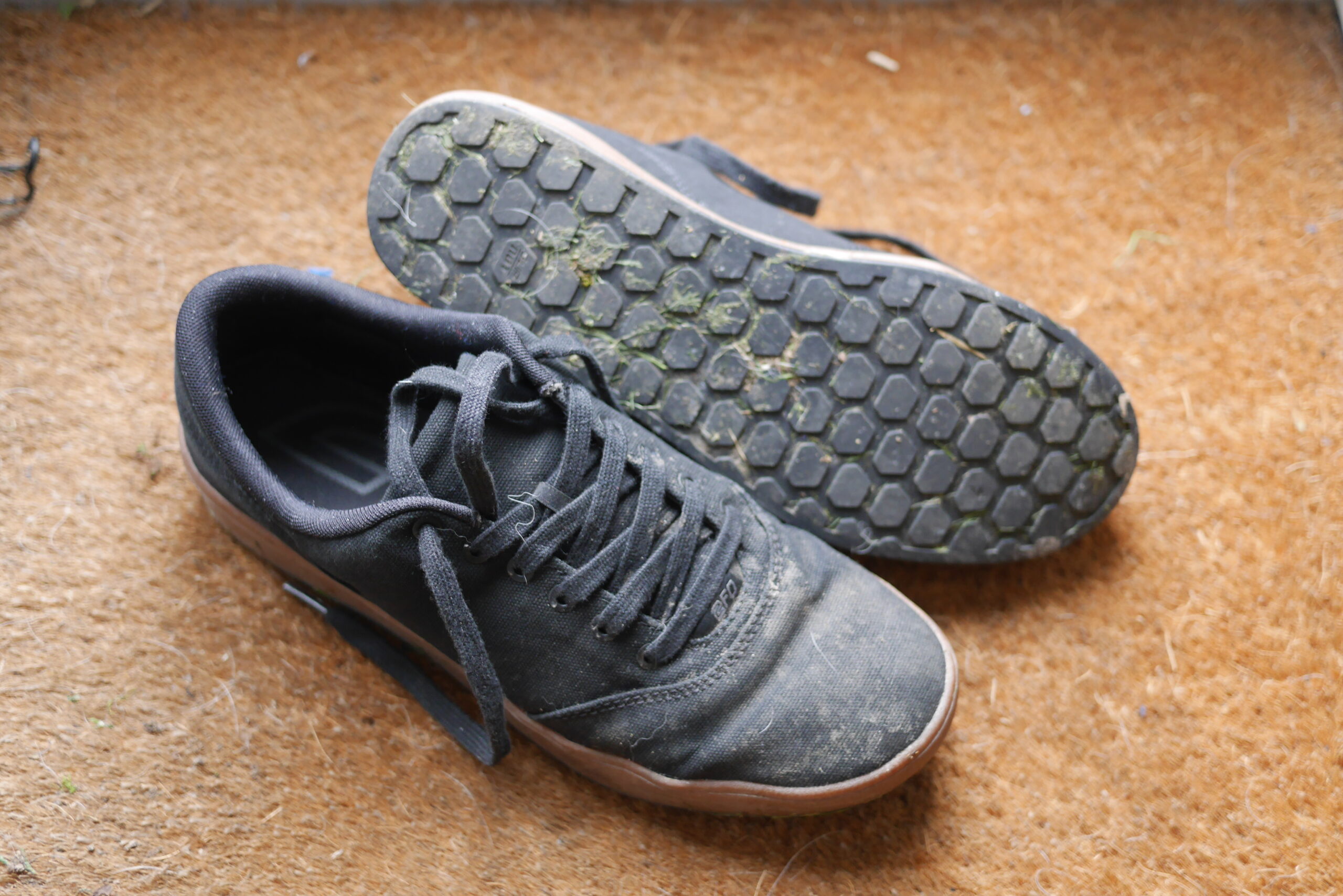 SlipNot rubber outsole. Canvas upper ‘sits’ into a cupped sole for a lower profile. Foam core midsole. Internal heel support. I (Benji) haven’t really pedalled around in there yet, apart from a couple of school runs, but I think they may have a place for the old summer evening sojourn on MTBs.