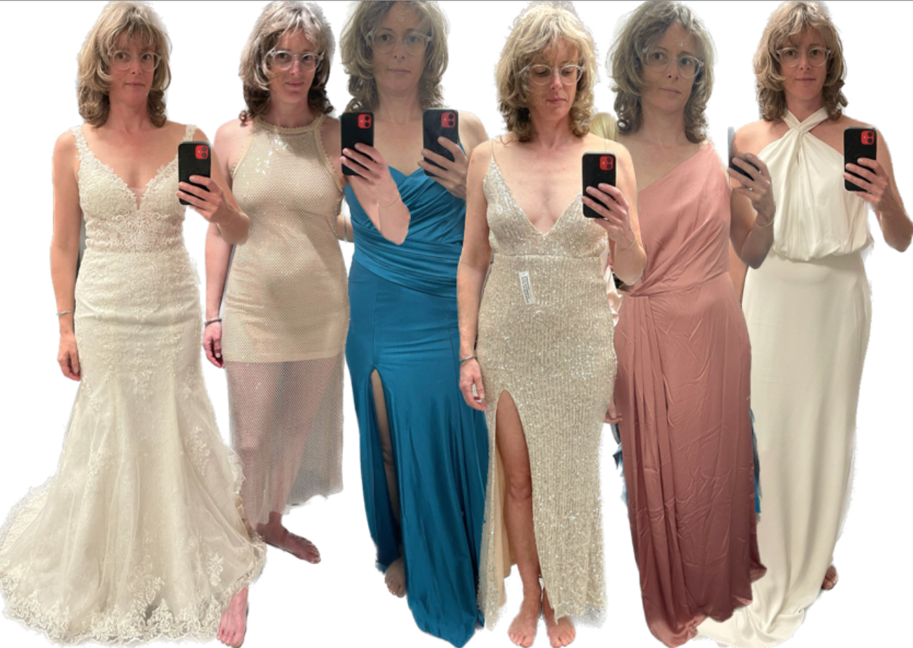 Anyway, FGF is often a series of photos of bad modelling, so it seems in keeping to share some wedding dress shopping nonsense. Consider it my audition for Fashionable Magazine Monthly. It’s a bit scary. Like I’m a sextuplet.