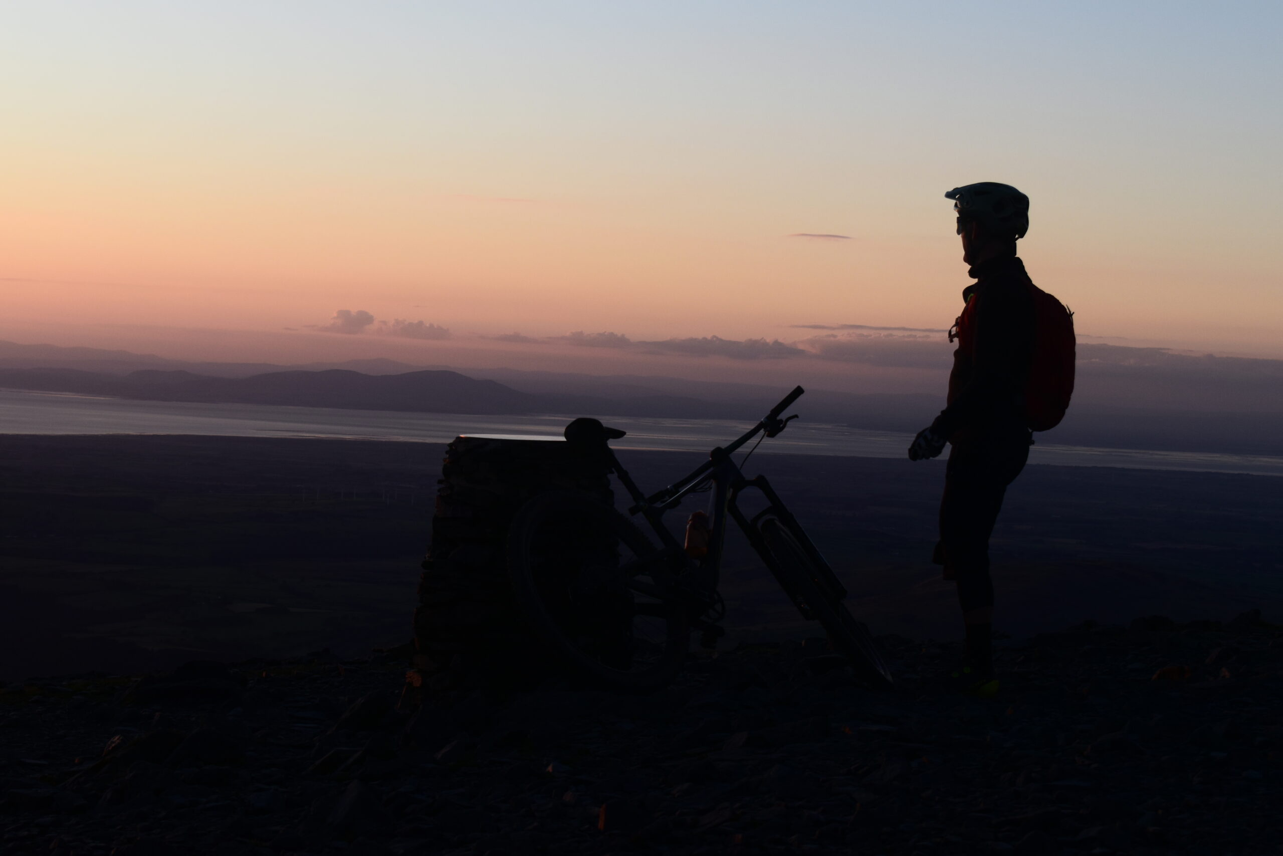 Reaching our rendezvous point, we met up with Vic and Sarah, Mark and Nick’s other (and let’s be honest, significantly better) halves and putative pit stop crew. Why carry lots of heavy kit and supplies when you can have a mid-ride refresh? Sustenance was proffered while Mark availed himself of his second booster battery – show-off bastard that he is. Jalouse? Moi? Pas du tout! Ok, maybe just a little. With sunset scheduled for less than an hour and a half hence, pressing on was the order of the day. We had the not so small matter of one of the largest mountains in England to ride up and down before dark. We were now well into golden hour territory – that glorious period of late evening sunshine that gives you a sense of hygge happiness and inner warmth even when the temperature is well below zero. You could call it luck, but it was all part of the plan. Being at the top of a mountain at sunset is a very special place to be – it engenders a sense of childlike wonder at the beauty all around us that we often take for granted. For me, it serves as a welcome reminder of the bigger world in which we live and that it is not how much money you earn or what car you drive that matters in life, but health, family and friendships.