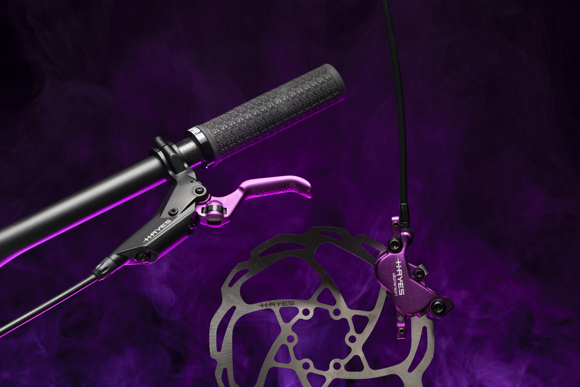 Well tomorrow is better when you build on experience and success from the past to reach new heights. Hayes has done just that with a limited-edition release of the Hayes Dominion A4 “Purple Hayes” Brake Kit. The purple colorway is a testament to the early day sof mountain biking that saw Hayes bring a technology to the world that was to forever change our sport. The early editions of Hayes disc brakes were both groundbreaking and disruptive. To celebrate such a fantastic ride, a quarter century of molding the definition of fantastic braking performance for mountain biking, Hayes is to produce a limited run of the highest performing brake to date, the Dominion A4, in a colorway that recalls perhaps the brand’s most iconic and visually striking model.