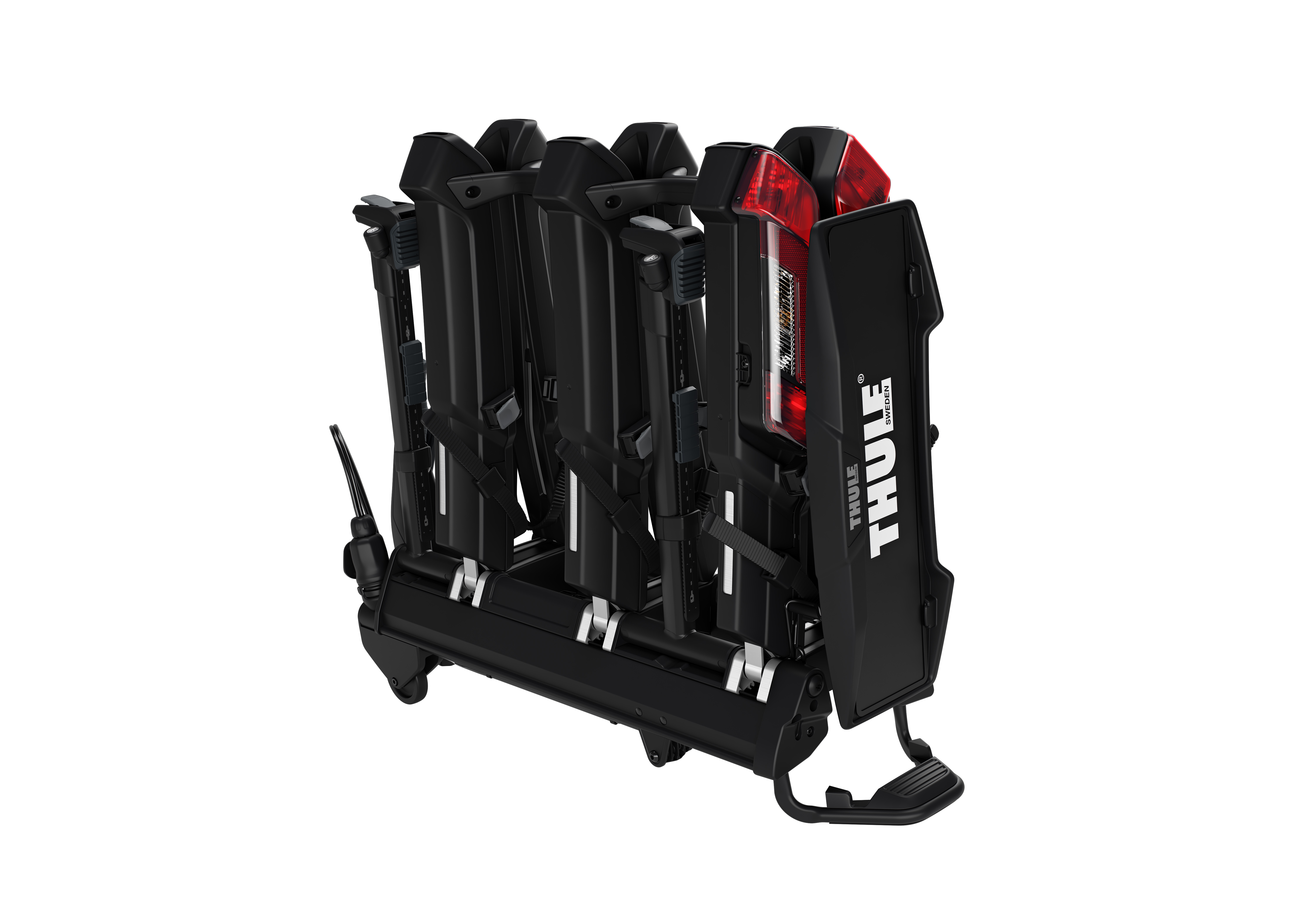 With no bikes attached, the bike arms stow flat, which makes the trunk accessible even without tilting the bike carrier. Thule Epos is also fully foldable for easy transportation and storage when not being used.