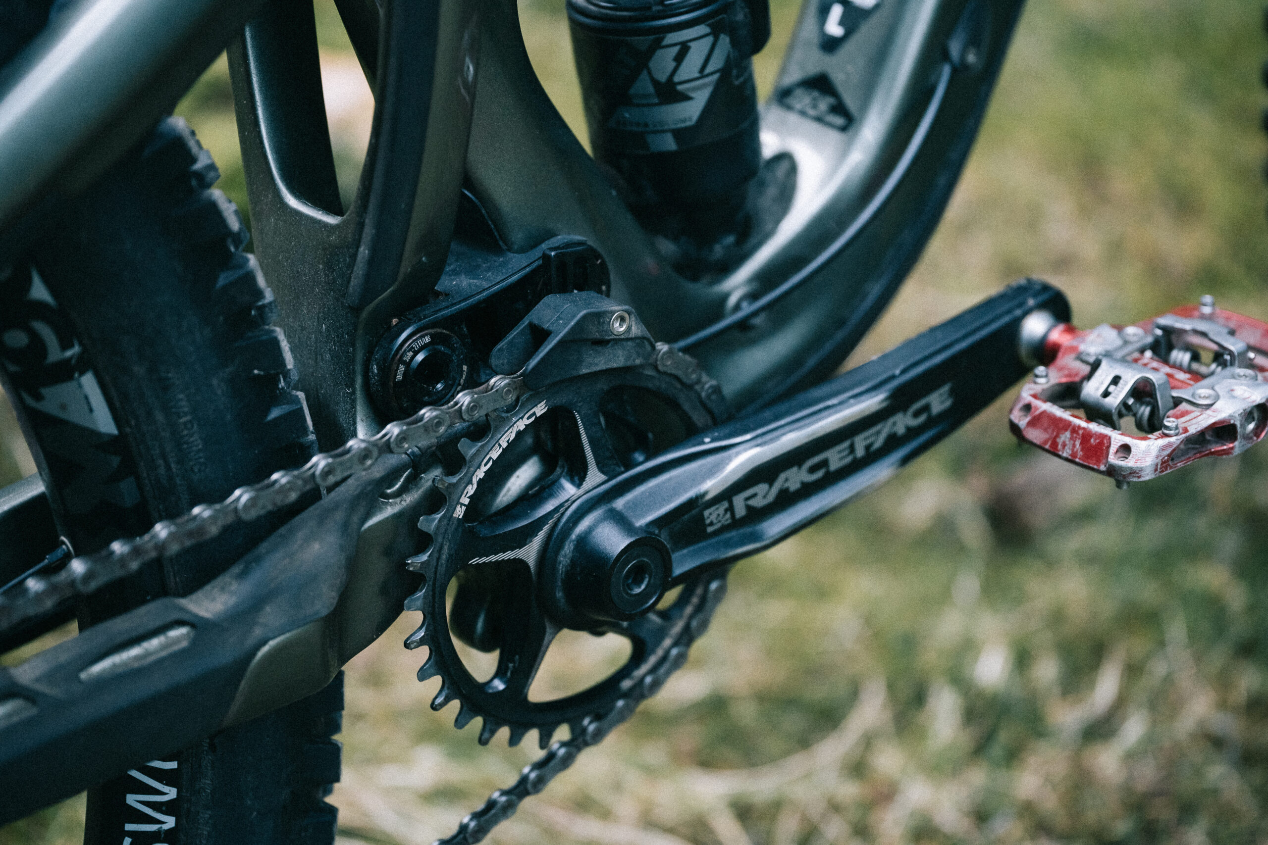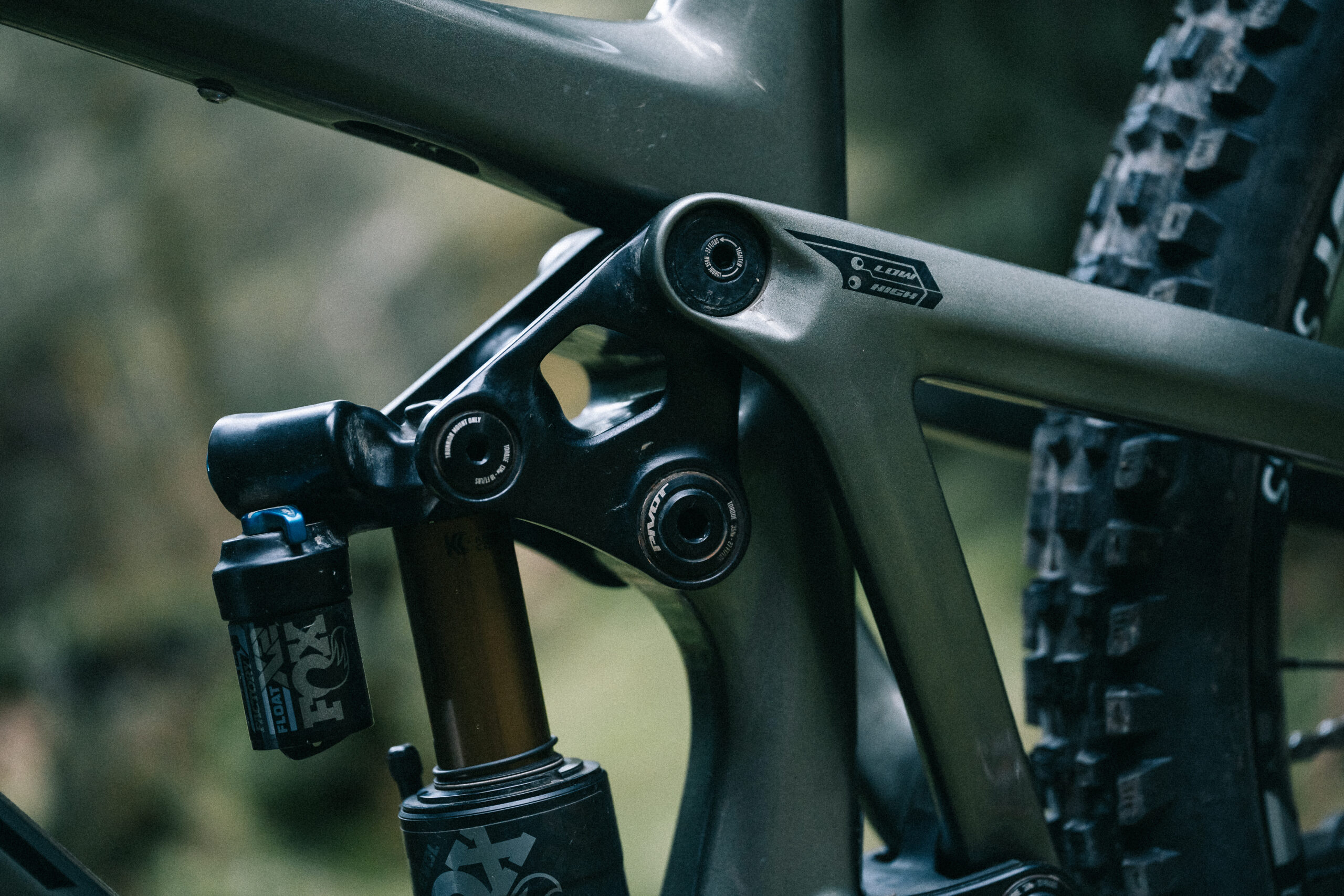 With a 170mm Fox 38 bolted up front and flip chip in the low position, the head angle sits at a comfortably slack 64° while the (virtual) seat angle isn’t as steep as some, being only 77°. Combined with a 488mm reach (size L), the bike is nice and roomy. Almost too roomy if I’m honest – the seated position felt quite stretched out for me (at 183cm) and I had to have the saddle rammed forward on the rails to get my pedalling position right.