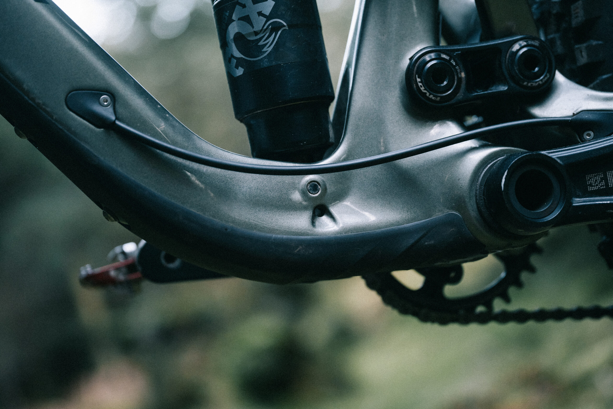 The frame is well equipped with (almost) full internal cable routing, Fox Live Valve compatibility, accessory mounts under the top tube, and a UDH derailleur hanger (meaning it can also take SRAMs latest and greatest Transmission drivetrain). The frame is well protected with chunky noise-reducing rubber pads covering all its vulnerable areas, and all sizes have room in the front triangle for a water bottle. So far, so good.