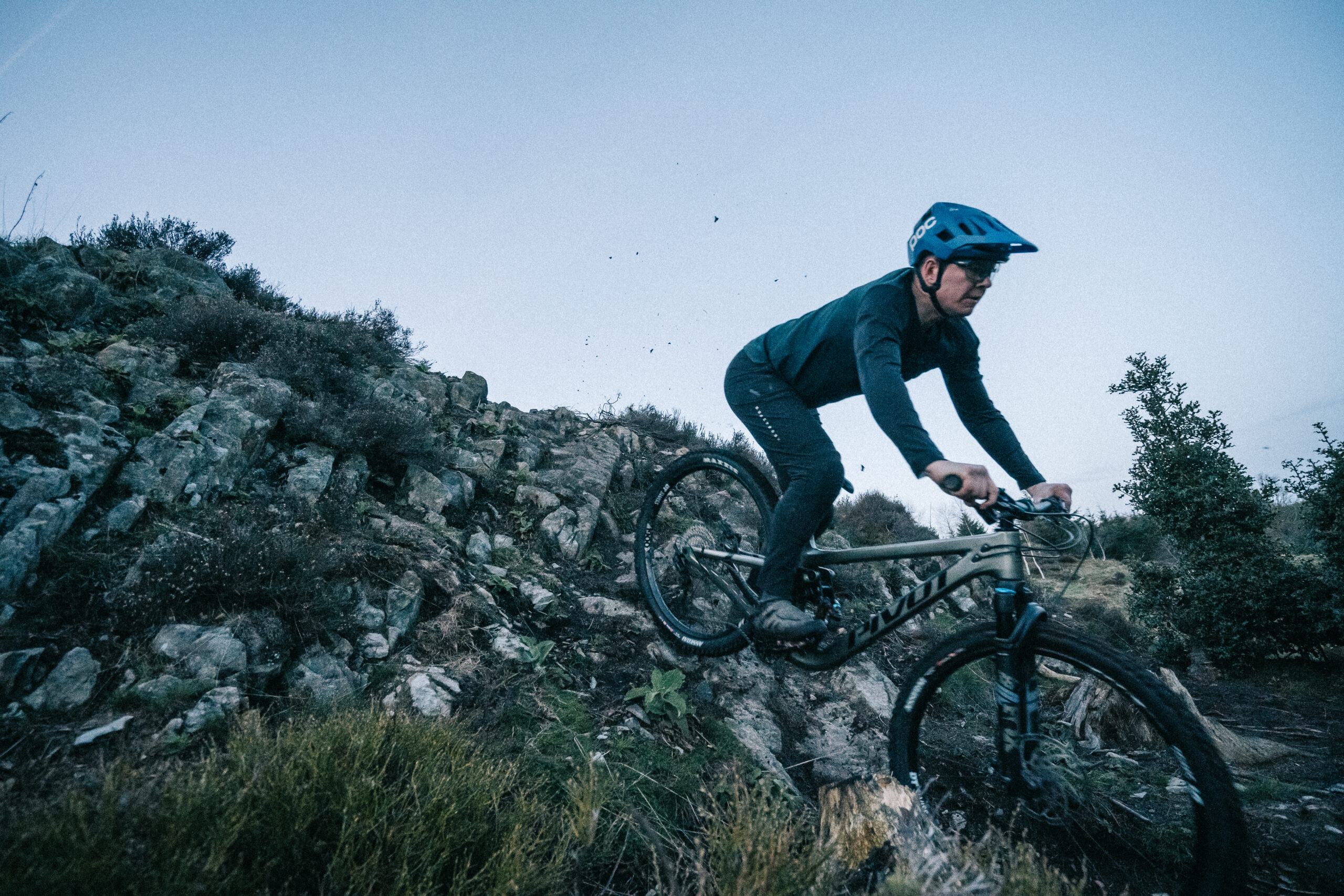 This was my first time on a DW linkage bike and I’m impressed – it worked incredibly well both up and down. I tried out the climb switch once or twice, and traction suffered on anything other than smooth fireroad climbs so I stopped reaching for the climb switch and got on with riding. Pedal bob just wasn’t an issue. Occasionally, the rear suspension became overwhelmed on chunkier and looser climbs, lacking the outright climbing traction afforded by high pivot platforms, but in my experience very little comes close to a high pivot for climbing traction.