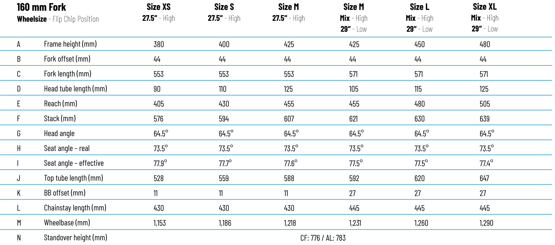 The 445mm chainstay length is a reasonable middle ground that should offer decent handling across all the 29” wheeled sizes. The smaller sizes and 27.5” frames have a 430mm chainstay length.