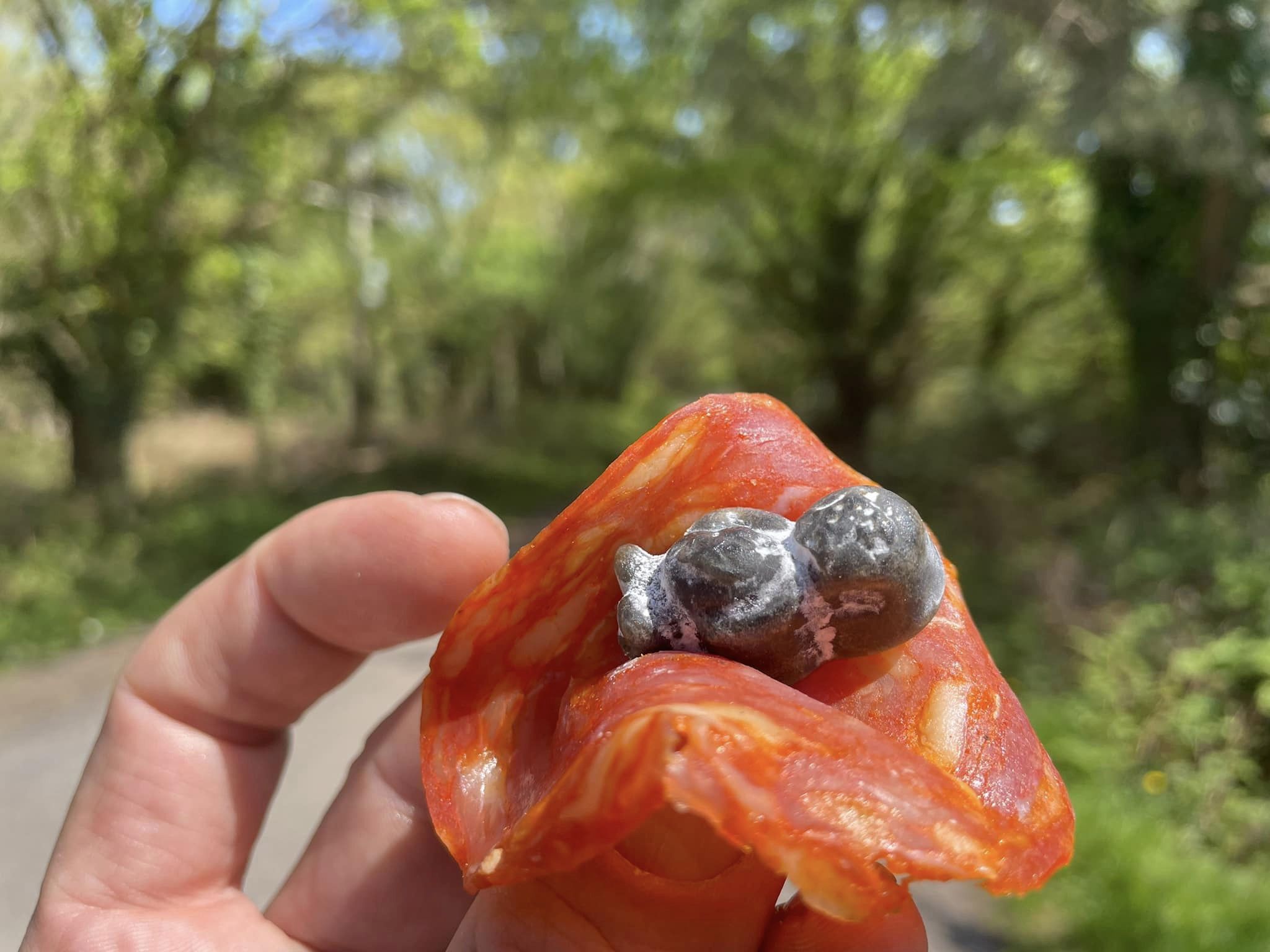 Charlie says: “Anything goes when you are bikepacking. We are all familiar with how fruit and meat can be a great partnership: pork and apple, turkey and cranberry… that sort of thing. Now you can enjoy the pleasure of fruity meat out on the trail. Simply wrap a jelly baby in a slice of chorizo and you are there. I didn’t really need to give you the recipe did I.