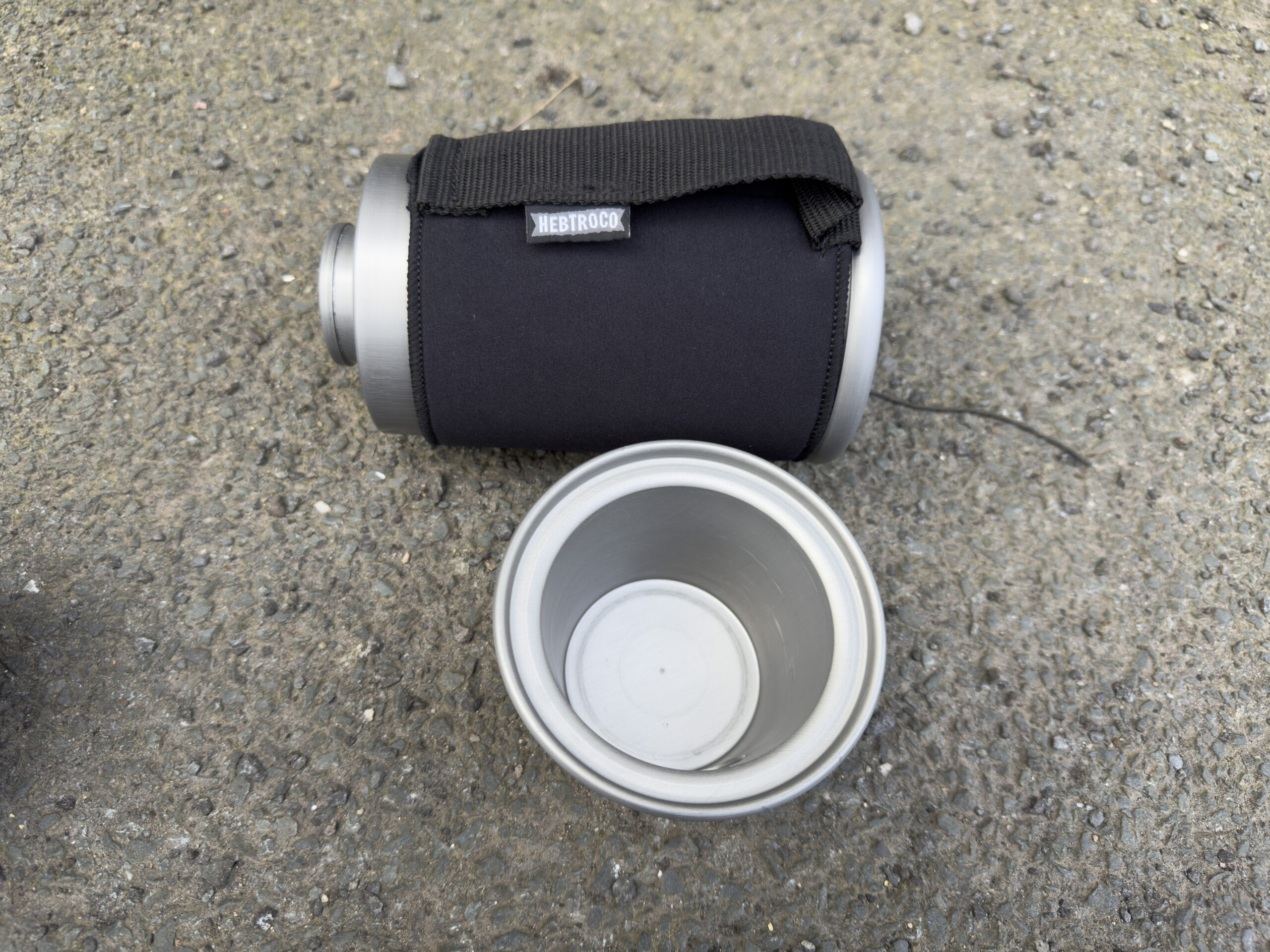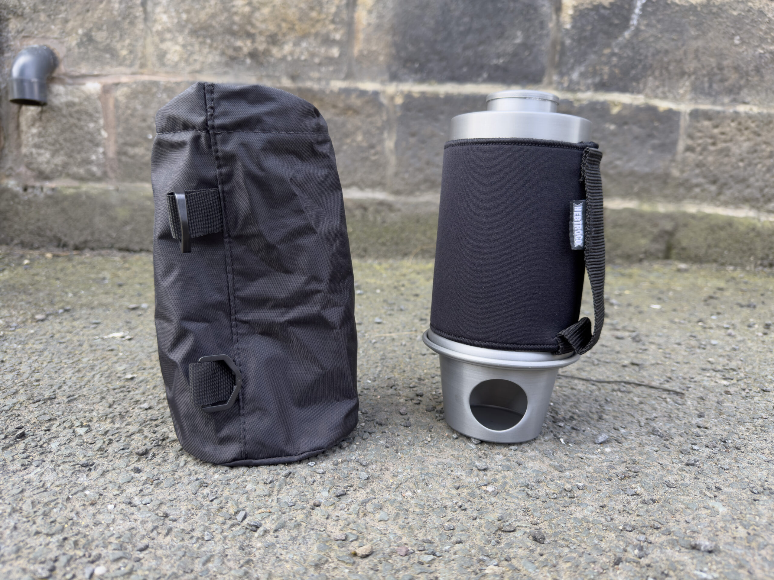 Fire in the hole! Put sticks in the bottom section, fill the upper container with water, and wait for the fire to turn your cold water hot. The container is like a Kelly Kettle big donut kettle/chimney, with the fire – and smoke – actually going up the middle, so you’re heating your water all the way through rather than just from the bottom. Made of spun aluminium in the UK, it comes with a bag so you can carry it with you on your travels. Instructions (lifted straight from the HebTroCo site) are: Place vent hole towards the wind. Fire and hot water will burn. It will boil water in 6-8 minutes providing fuelling is good and a light breeze (you can also blow yourself or get a friend too).