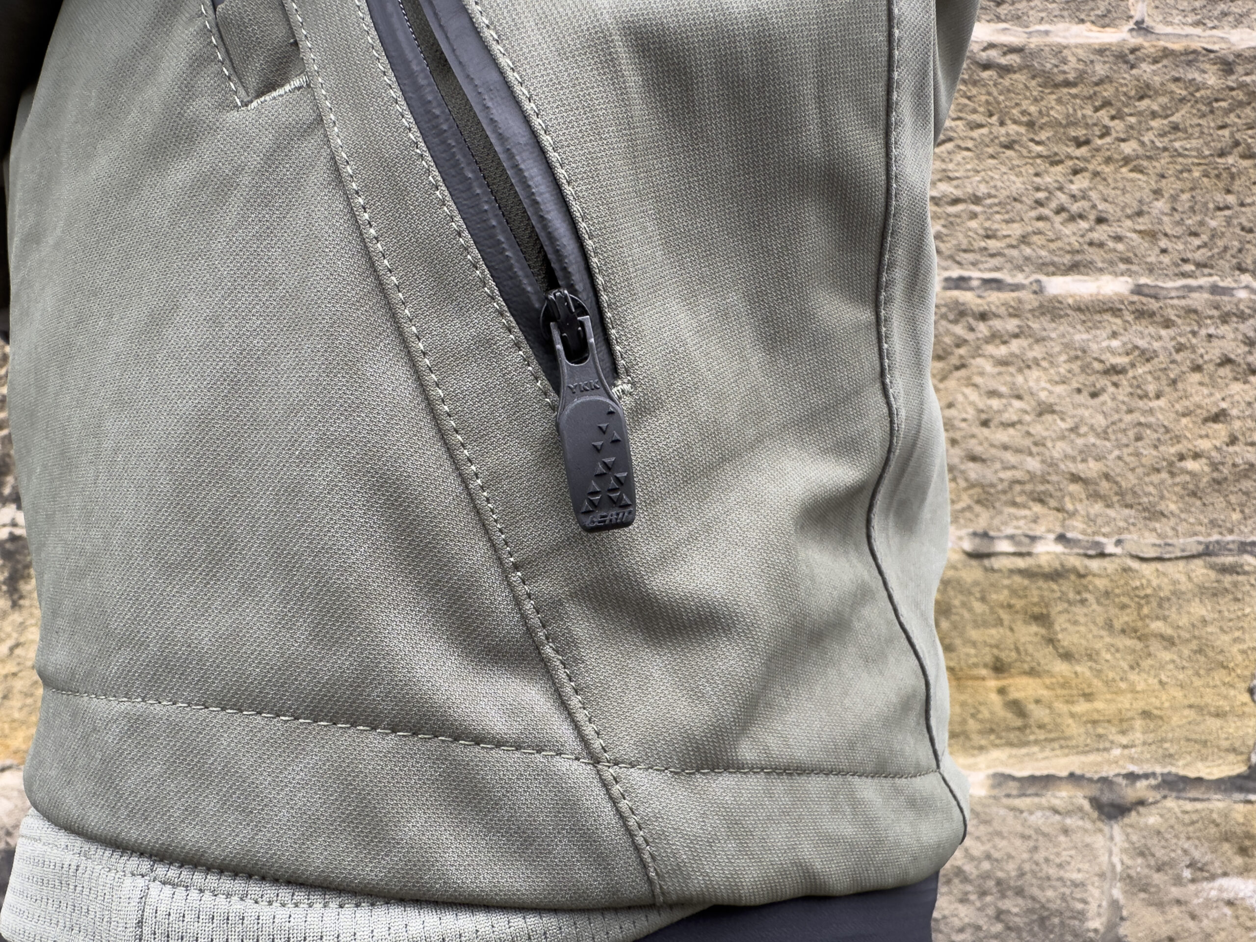 I don’t know if Leatt call this colour scheme ‘West Yorkshire Conurbation Camo’ but they should do. You can have that for nowt. Anyway… some features that look Actually Good: 30.000mm waterproof /30.000g/m² breathability, ClimbVent connector for pedaling with the jacket open, Chin fold design, three-point adjustable hood with stiffened peak fits over full-face helmets and – last but not least- a seat gripper to reduce ‘jacket rise’.