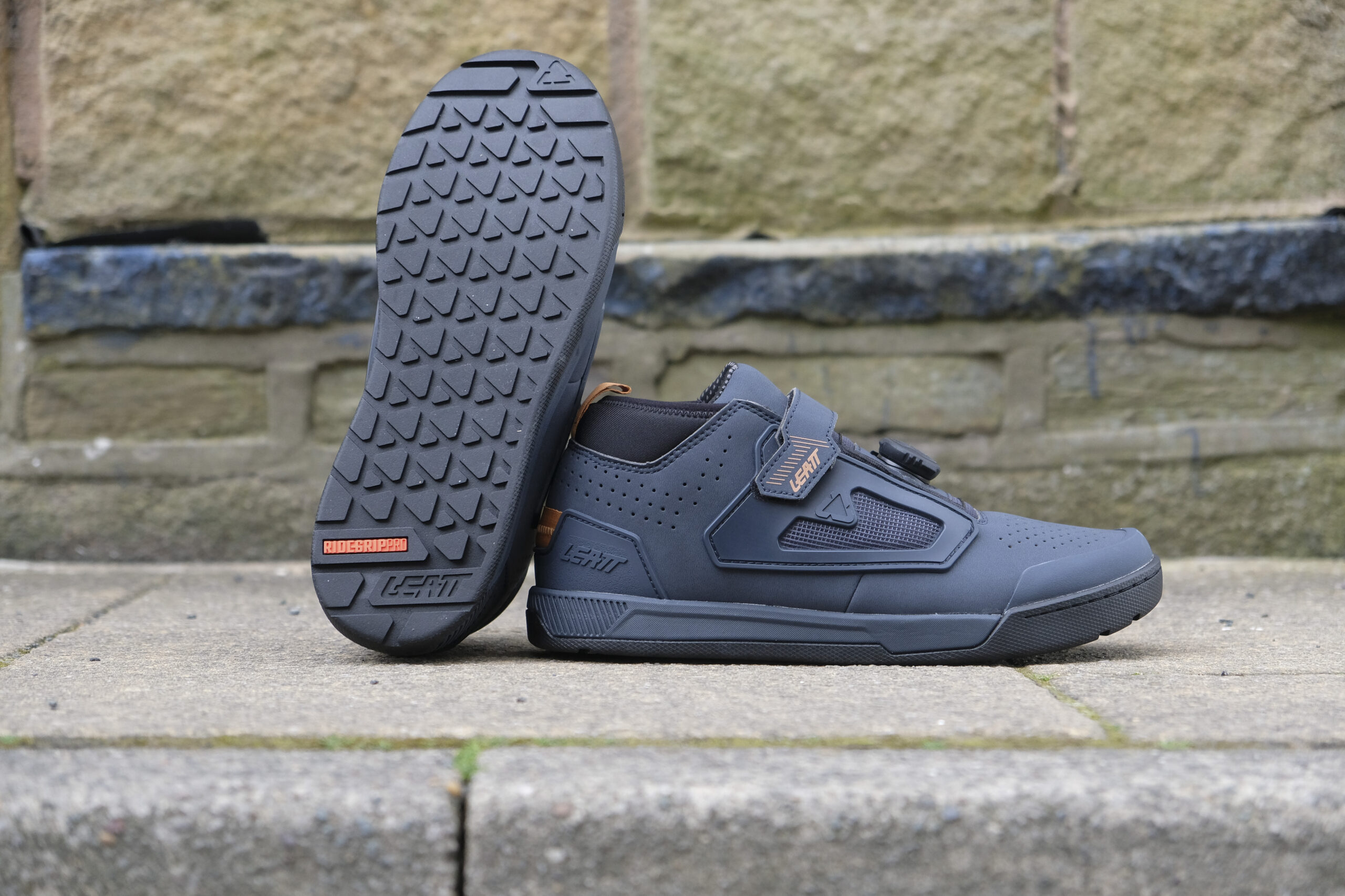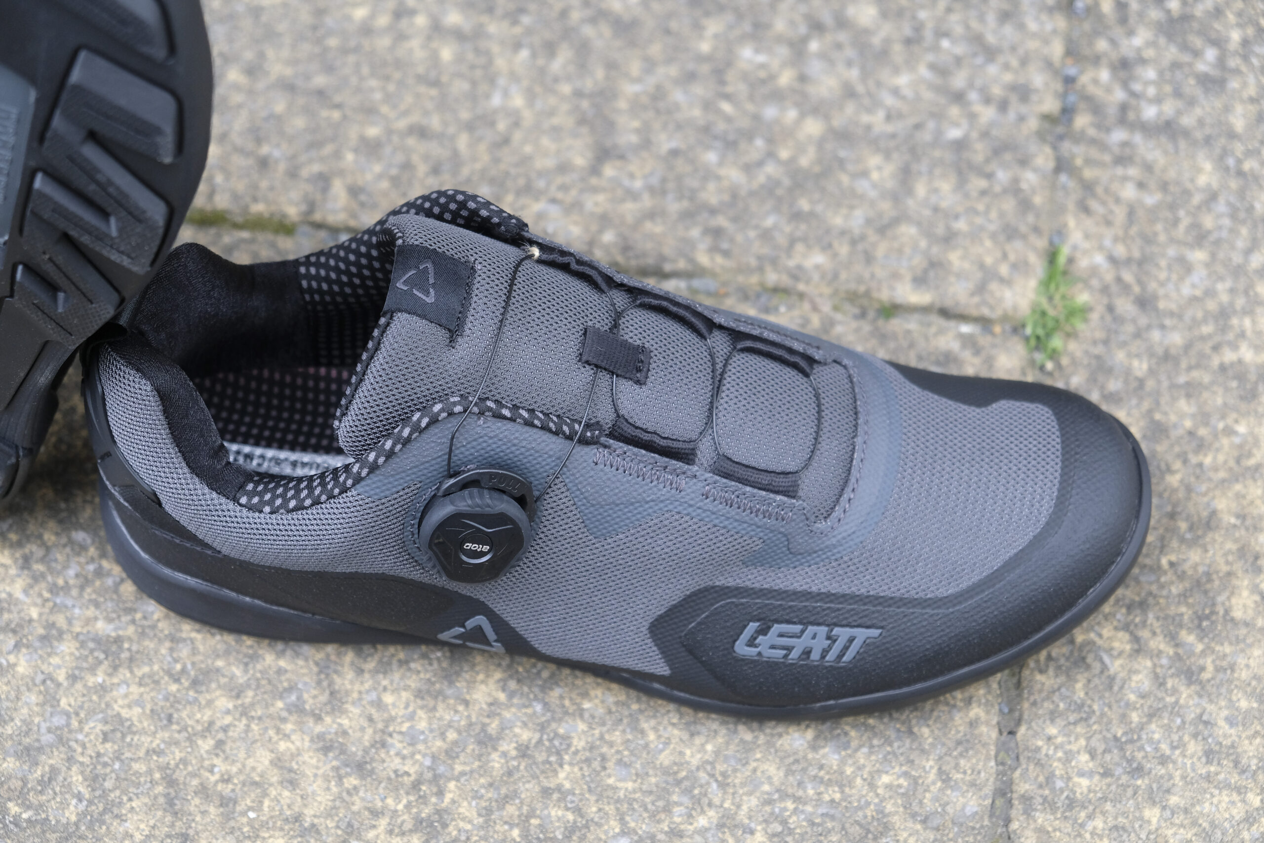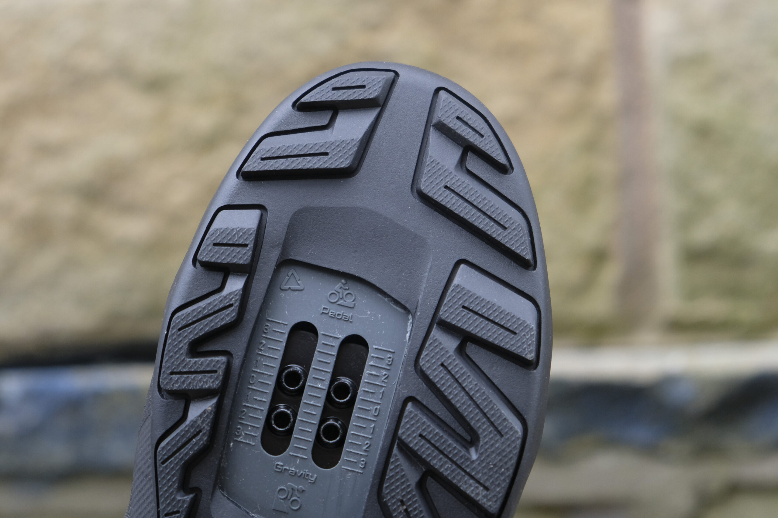 A lightweight trail shoe. The ATOP lace system. The RideGrip sole compound with a WaffleGrip pattern. This clipless shoe features a relatively long cleat channel (move the cleat forwards for “power orientated ride”, or further back for “more aggressive gravity riding”). The breathable membrane is intended for Spring-to-Autumn riding conditions. The shoe is generally reinforced in key areas to improve protection and extended product life.