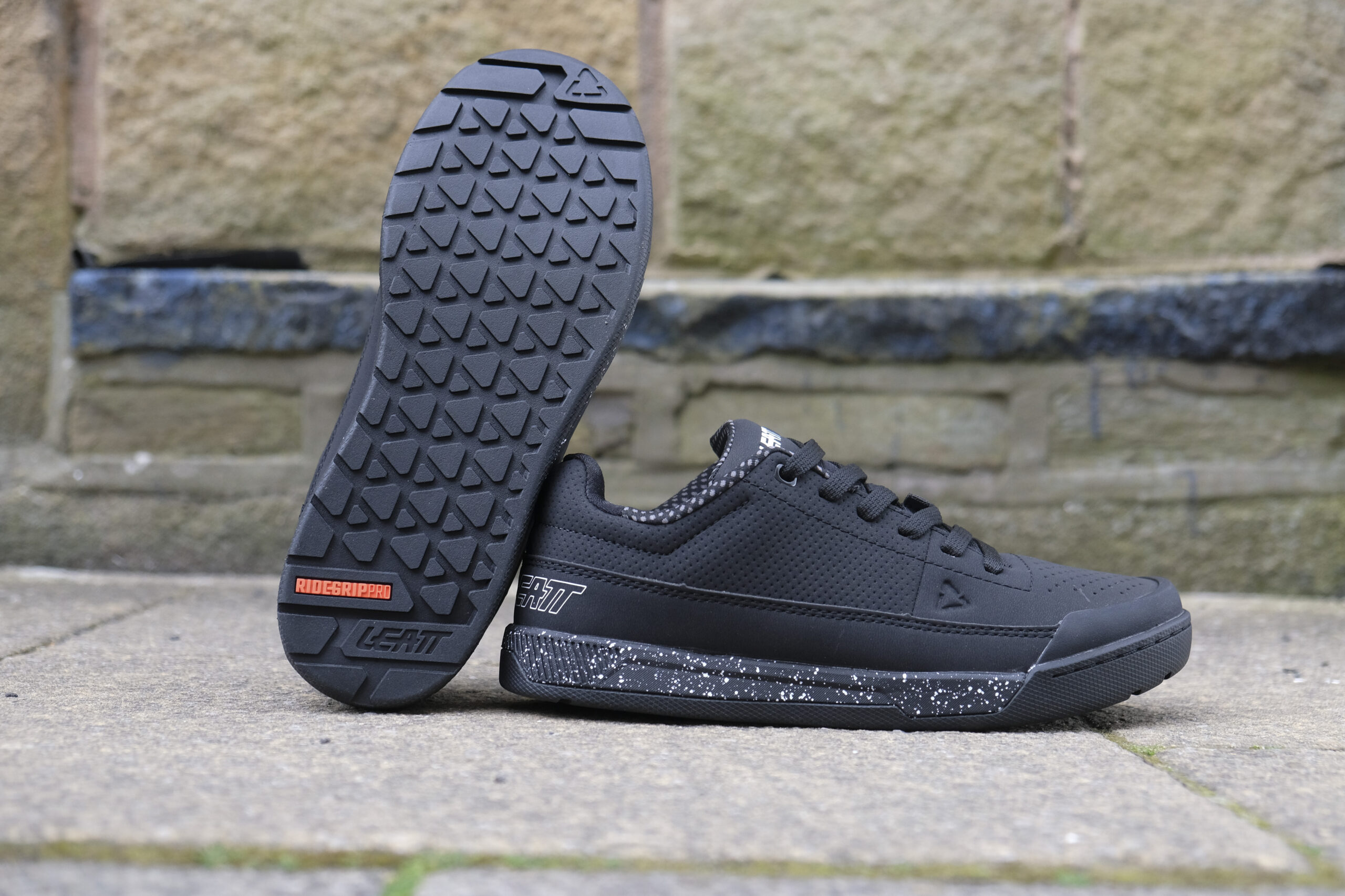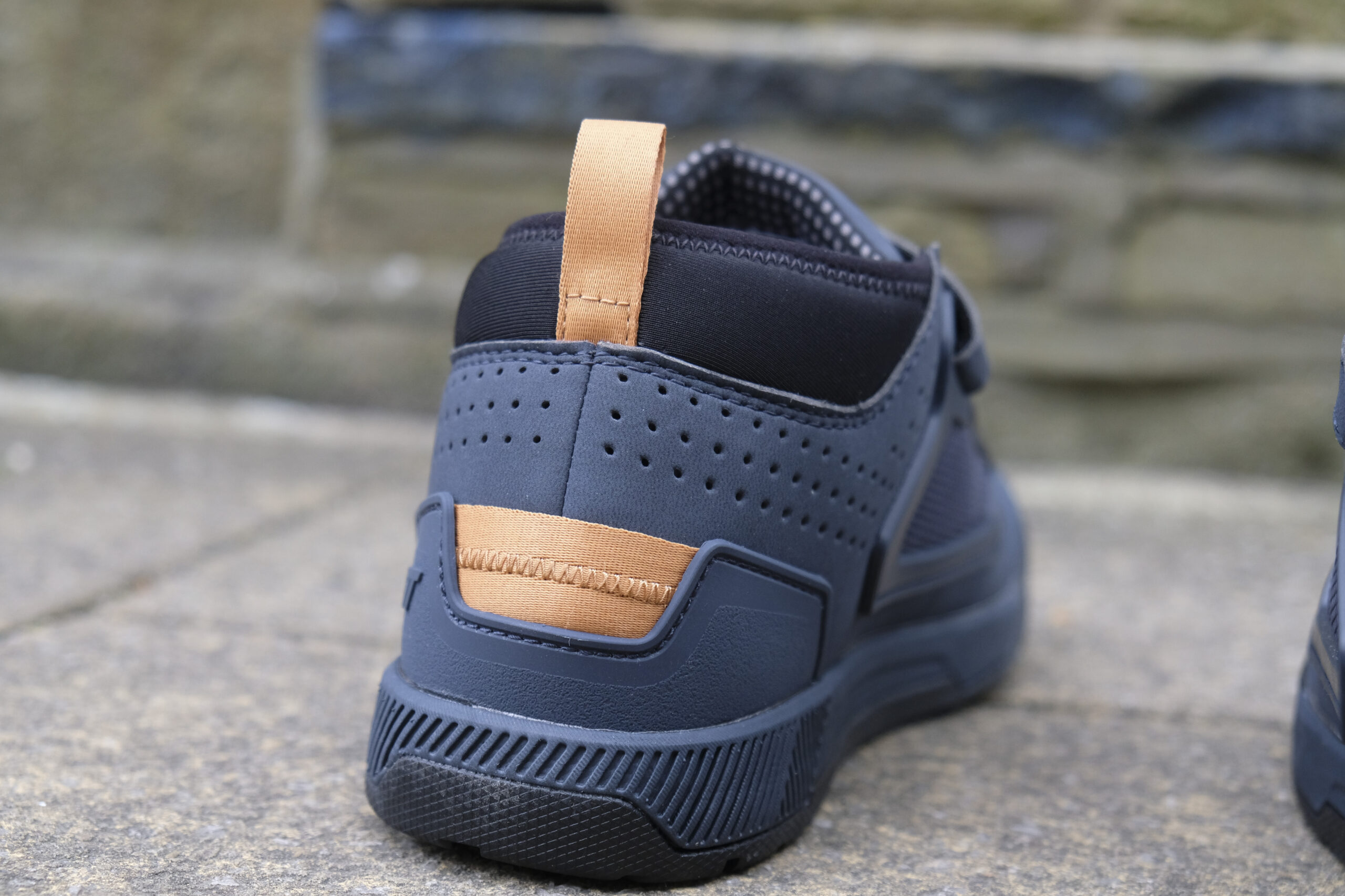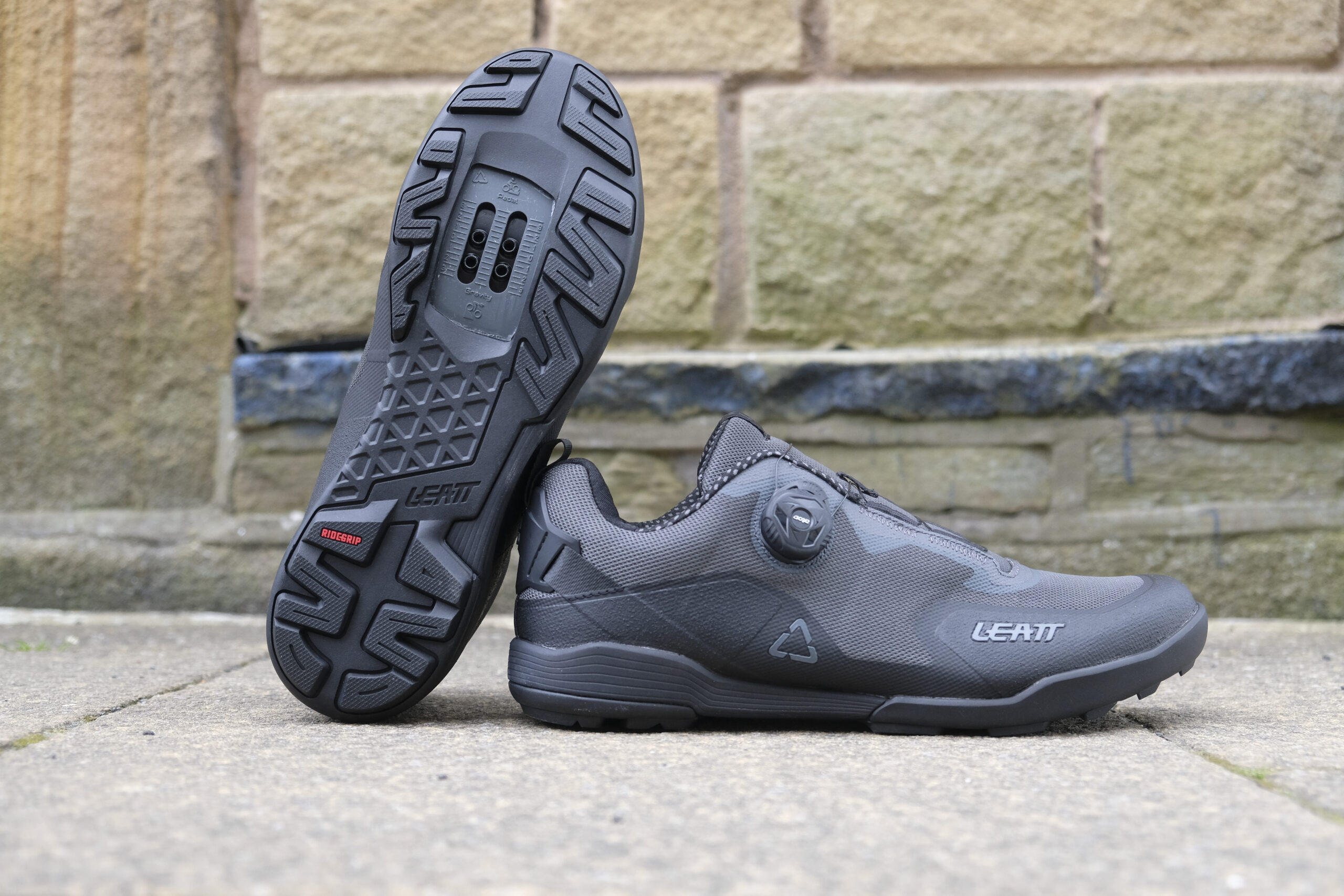 A lightweight trail shoe. The ATOP lace system. The RideGrip sole compound with a WaffleGrip pattern. This clipless shoe features a relatively long cleat channel (move the cleat forwards for “power orientated ride”, or further back for “more aggressive gravity riding”). The breathable membrane is intended for Spring-to-Autumn riding conditions. The shoe is generally reinforced in key areas to improve protection and extended product life.