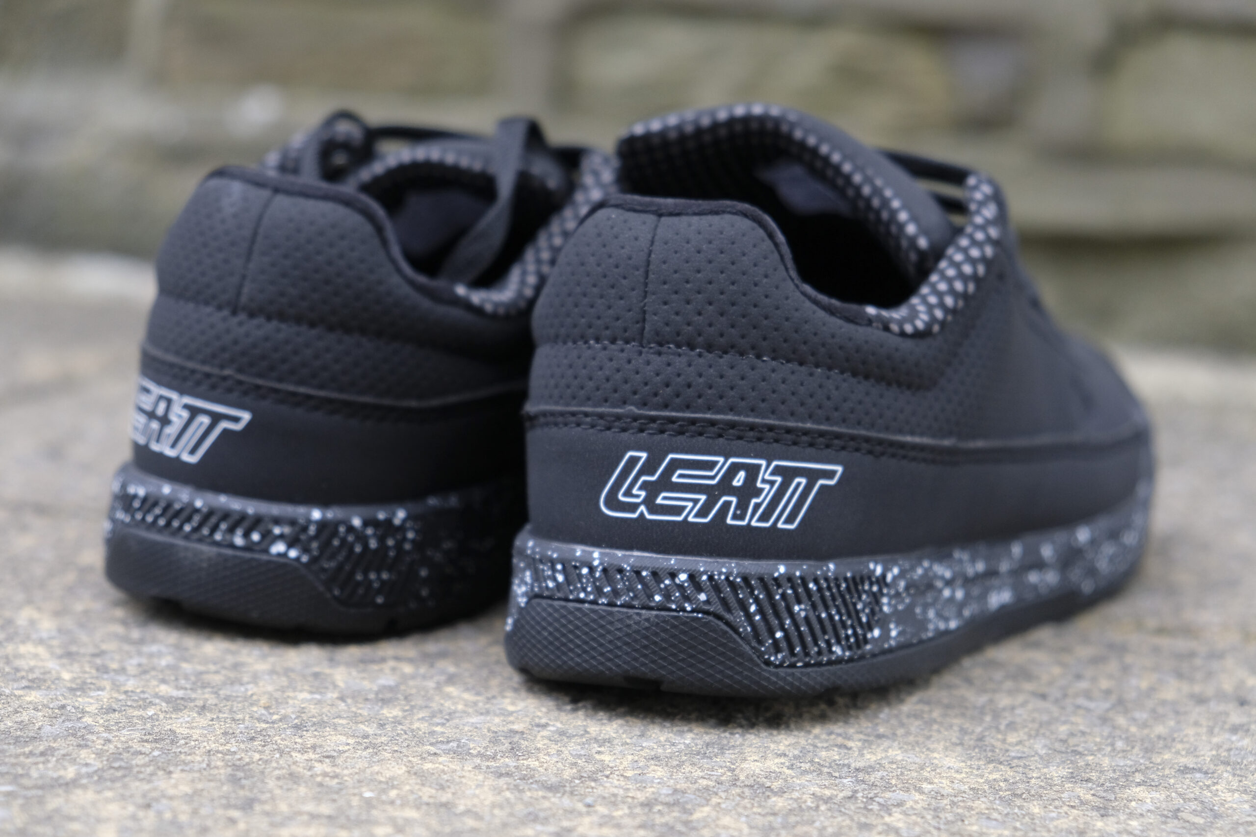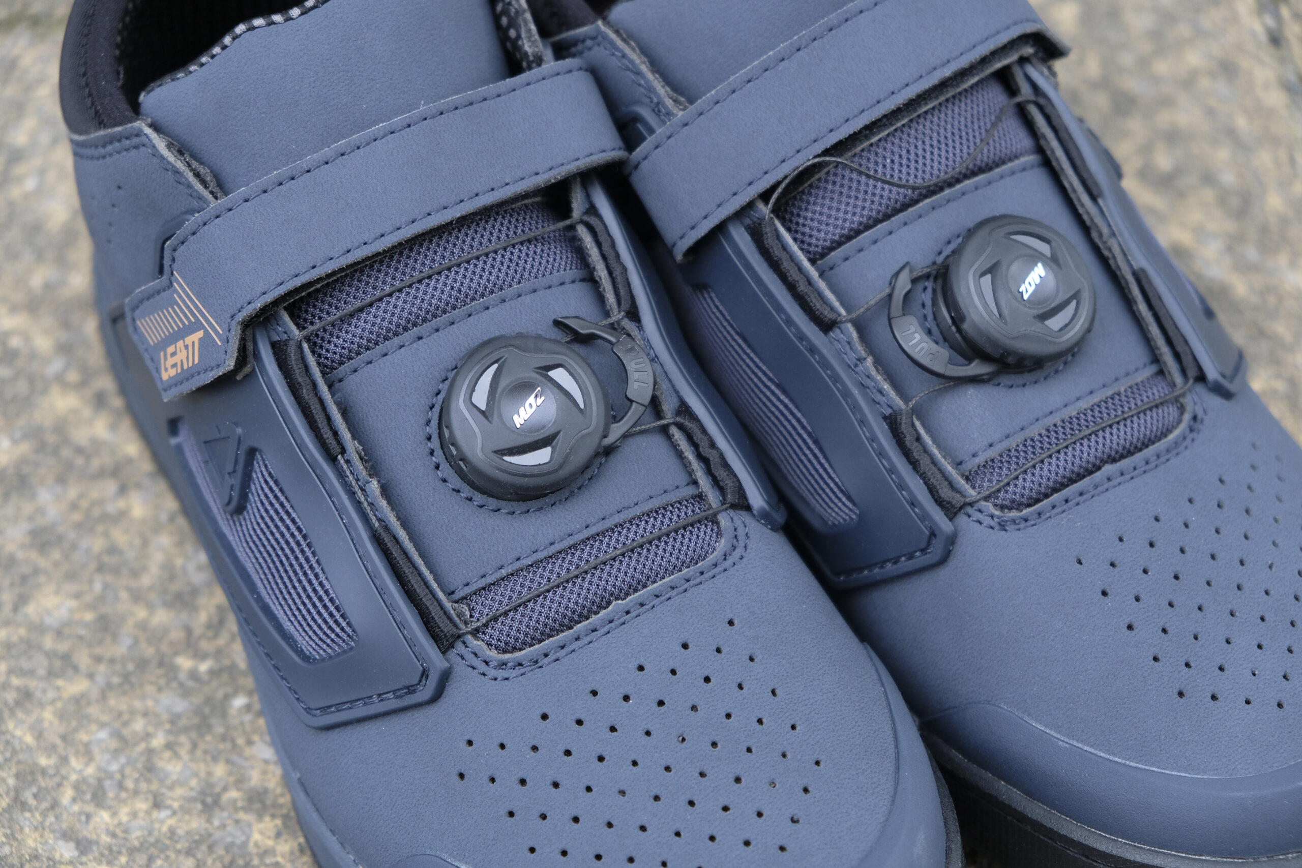 Dial-up ‘MOZ’ cable lacing fit system on top of the shoe. Same revised compound, sole tread and features as the shoe above. Synthetic leather-like shoe upper. Neoprene ankle collar. We’re always on the lookout for a flat pedal shoe that doesn’t use laces… that is also an actually good riding shoe. We can’t wait to give these a spin out.