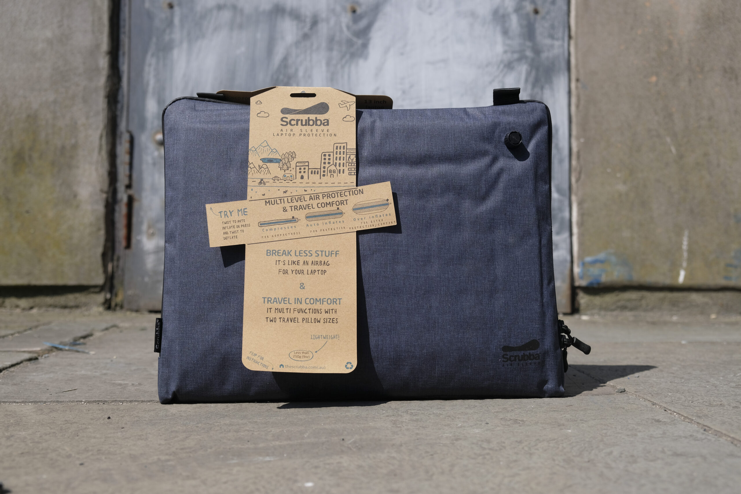“In its over-inflated state, the Scrubba air sleeve acts as a small, comfortable travel pillow, perfect for relaxing at the park or trying to catch up on some sleep at the airport.” – So, you can sleep on the job.