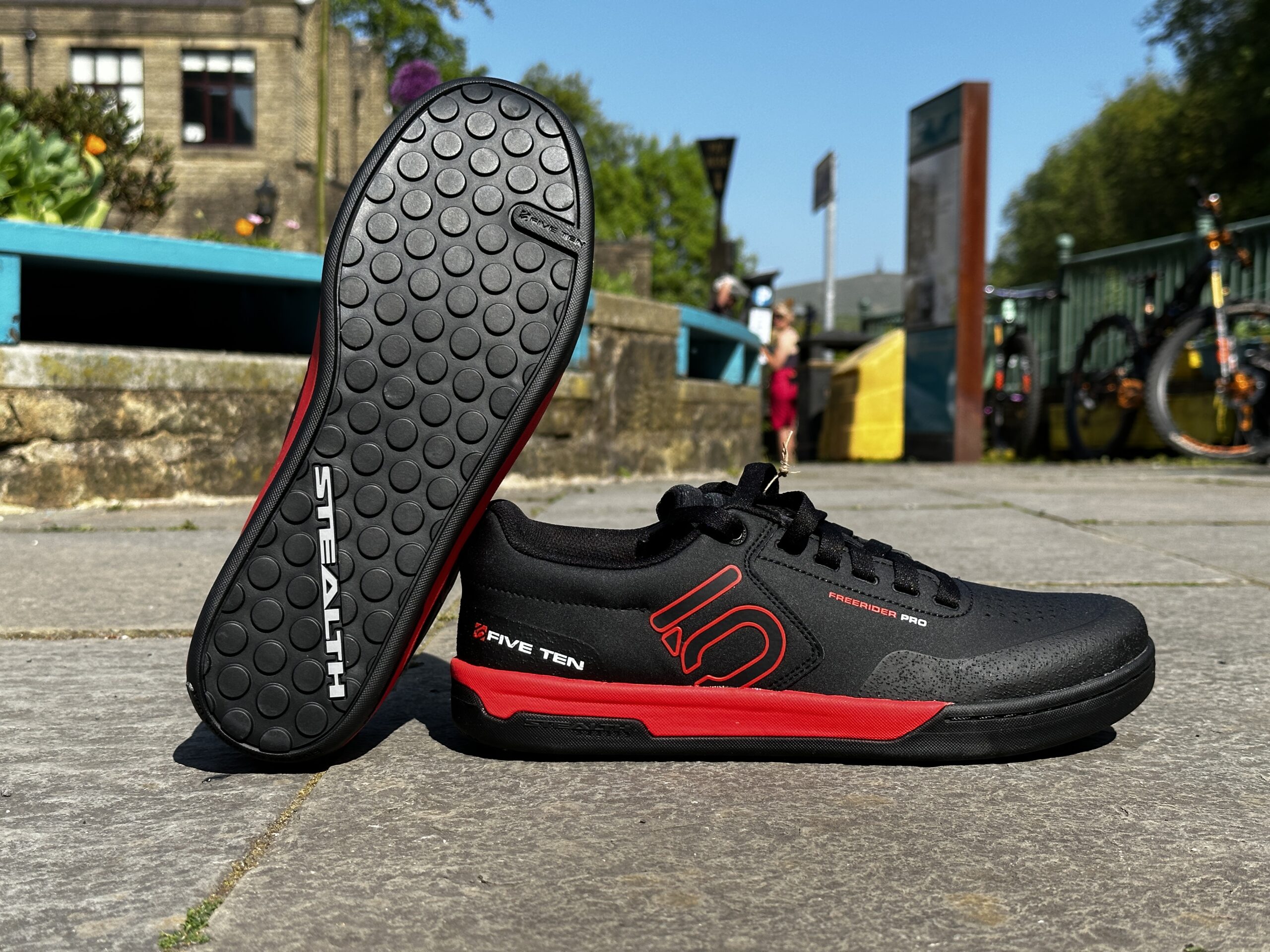 When you’ve got a fair few sets of flat pedals to assess, you need a benchmark shoe. And it don’t get more benchmarky than the Five Ten Freerider Pro. The sizing appears to have changed a bit in recent years (they’ve got a bit snugger for their nominal size) but if you half-size up from your previous/usual, you’ll still be lovin’ everything that these iconic sneaks offer. That is, grip ‘n’ feel. Grip and feel.