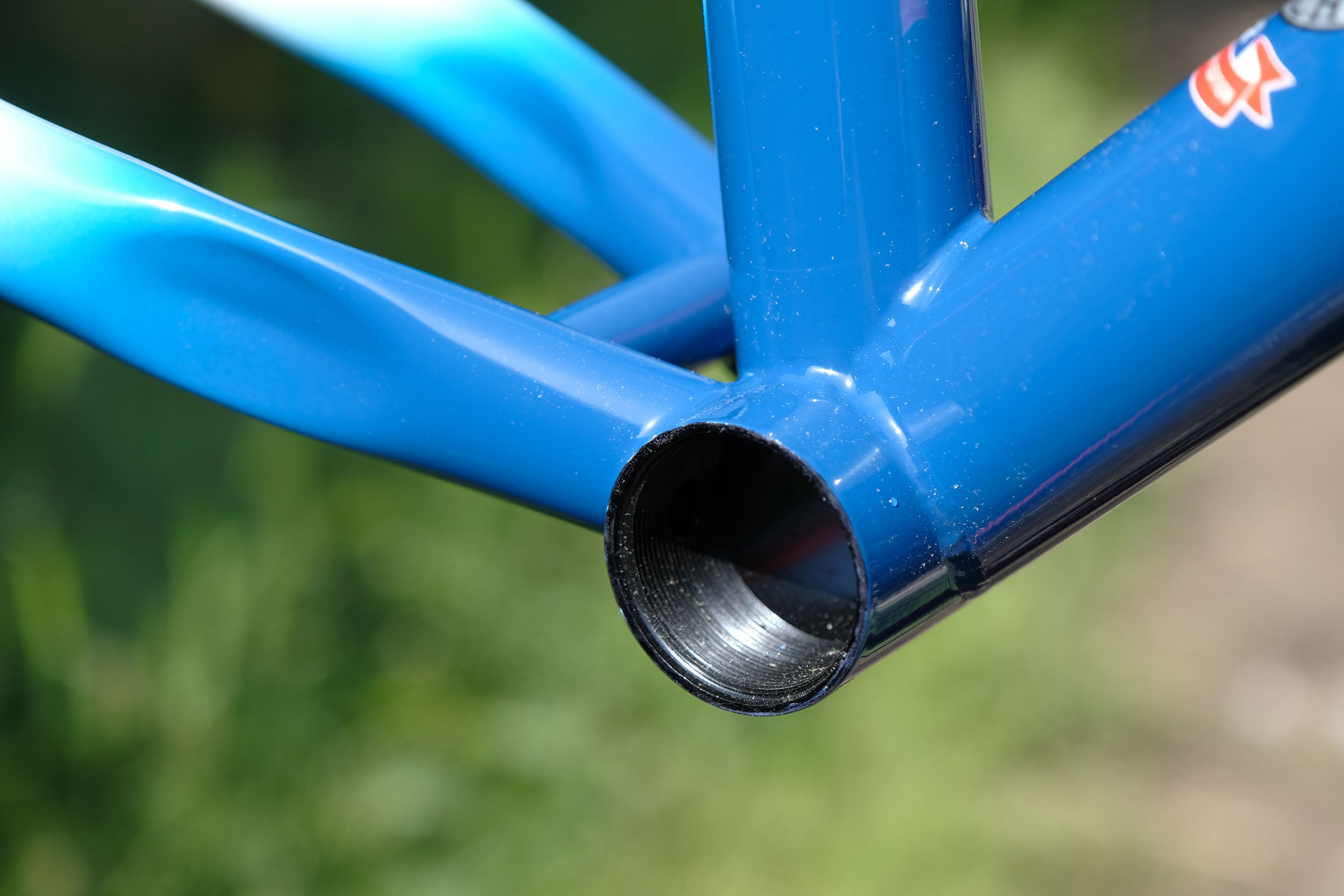 Up front, there’s provision for a 120mm fork, and there’s seat-tube routing for a dropper post, while the rest of the cabling is external. There’s a threaded BB shell (which, like all internal surfaces seems anti-rust treated) and frame also comes with drop-in headset bearings