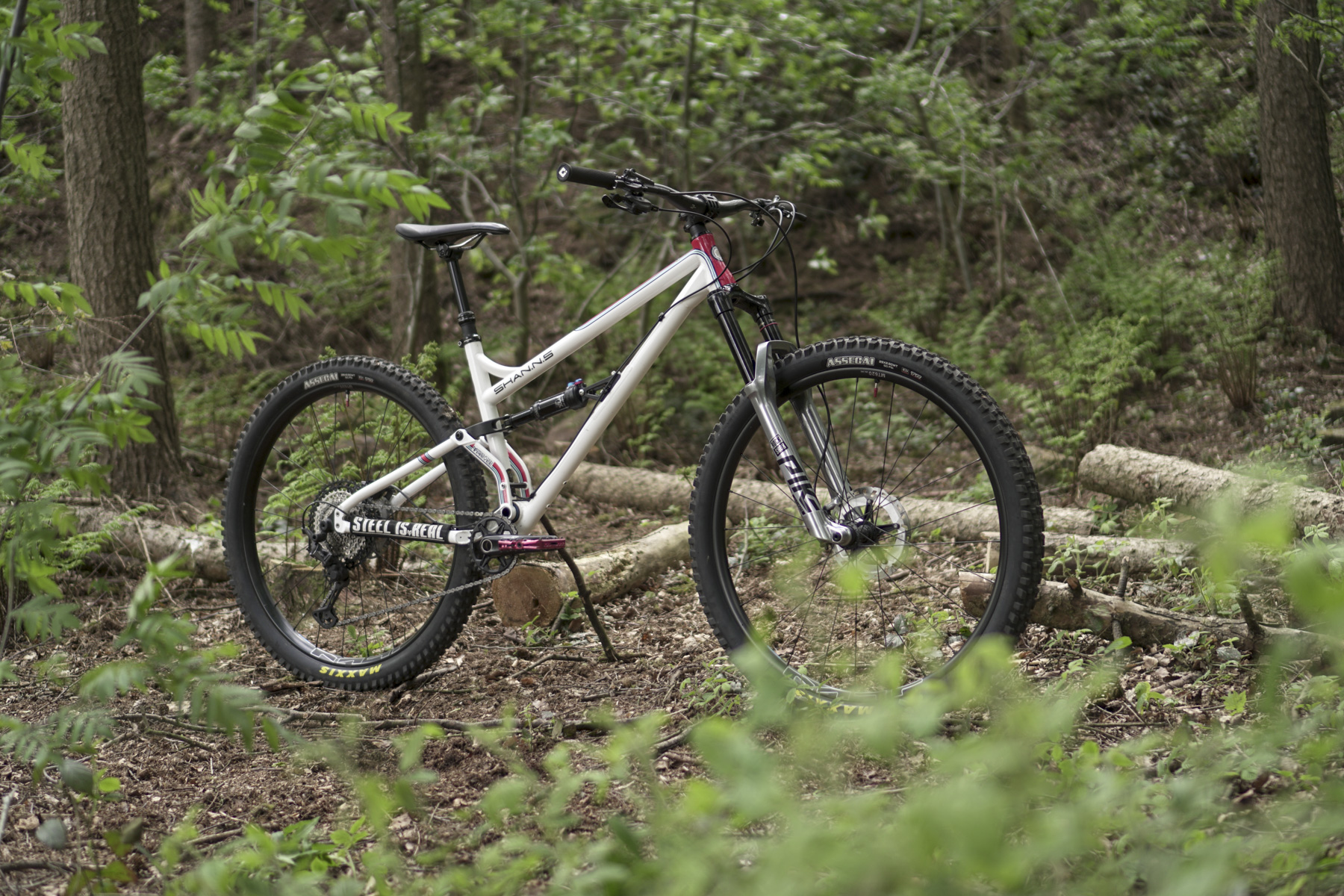 Compared to the carbon and alloy full-suspension bikes we usually see on test, the slim steel tubes of the Shan No5 make for a refreshing change. The tubeset is called MCS and it’s a type of 4130 steel, the same type of material that was used on race car chassis back in the day.