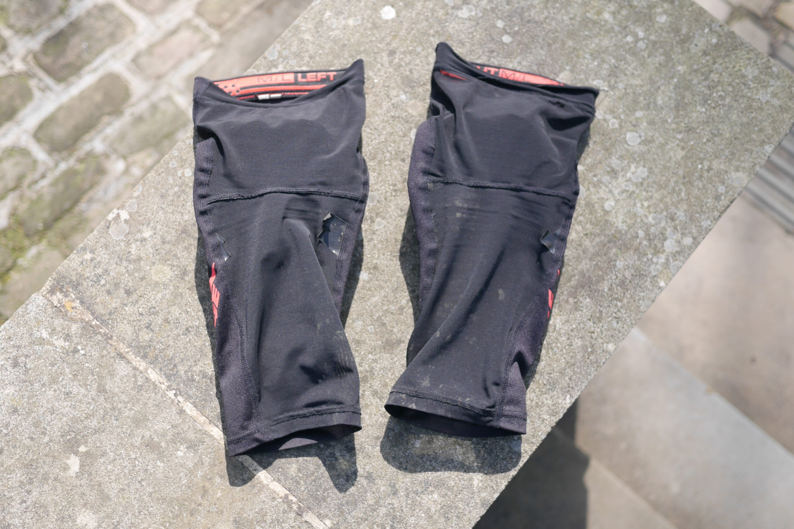 Because of this slippery sketchiness, the pads that I look for have to offer a decent amount of protection (as opposed to foam filled knee warmers). They also need be comfortable enough during a few hours of pedaling (and pushing).