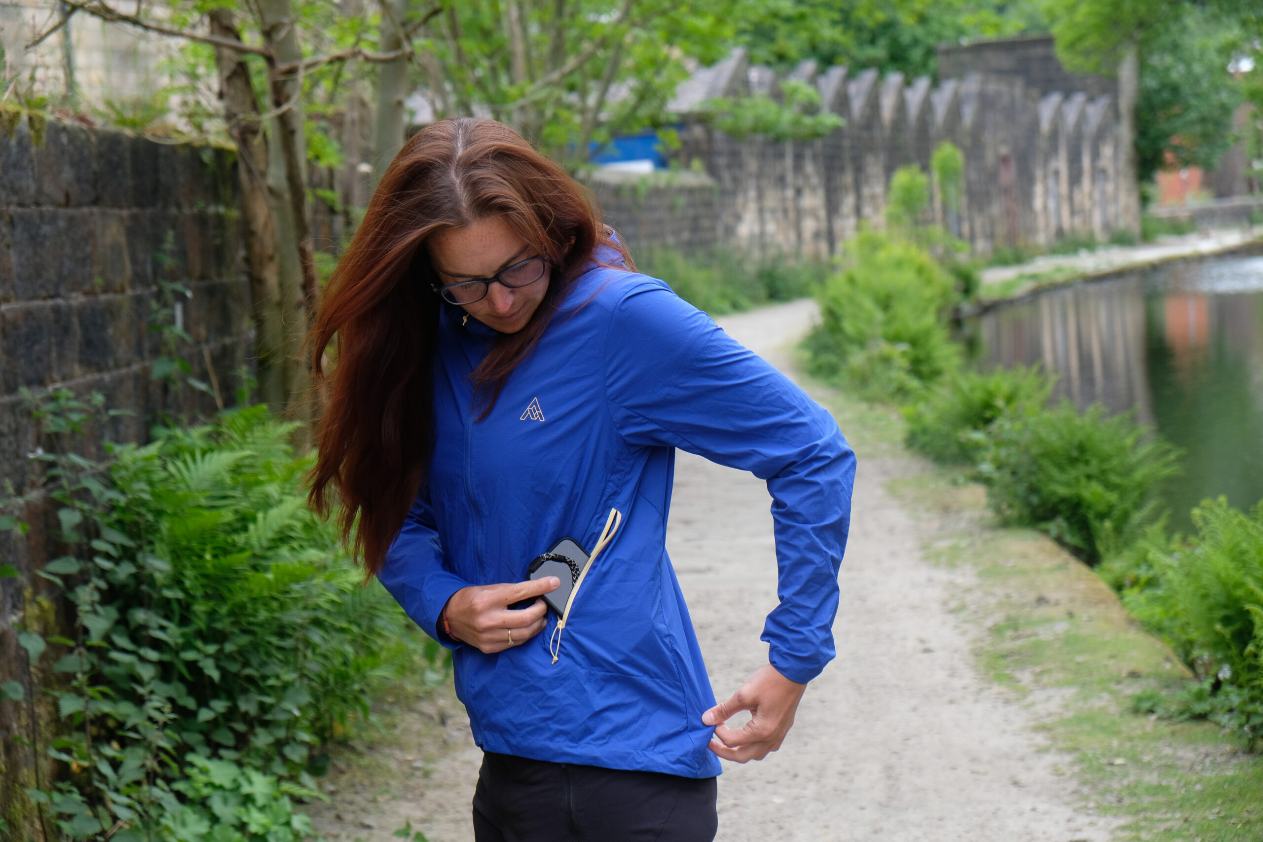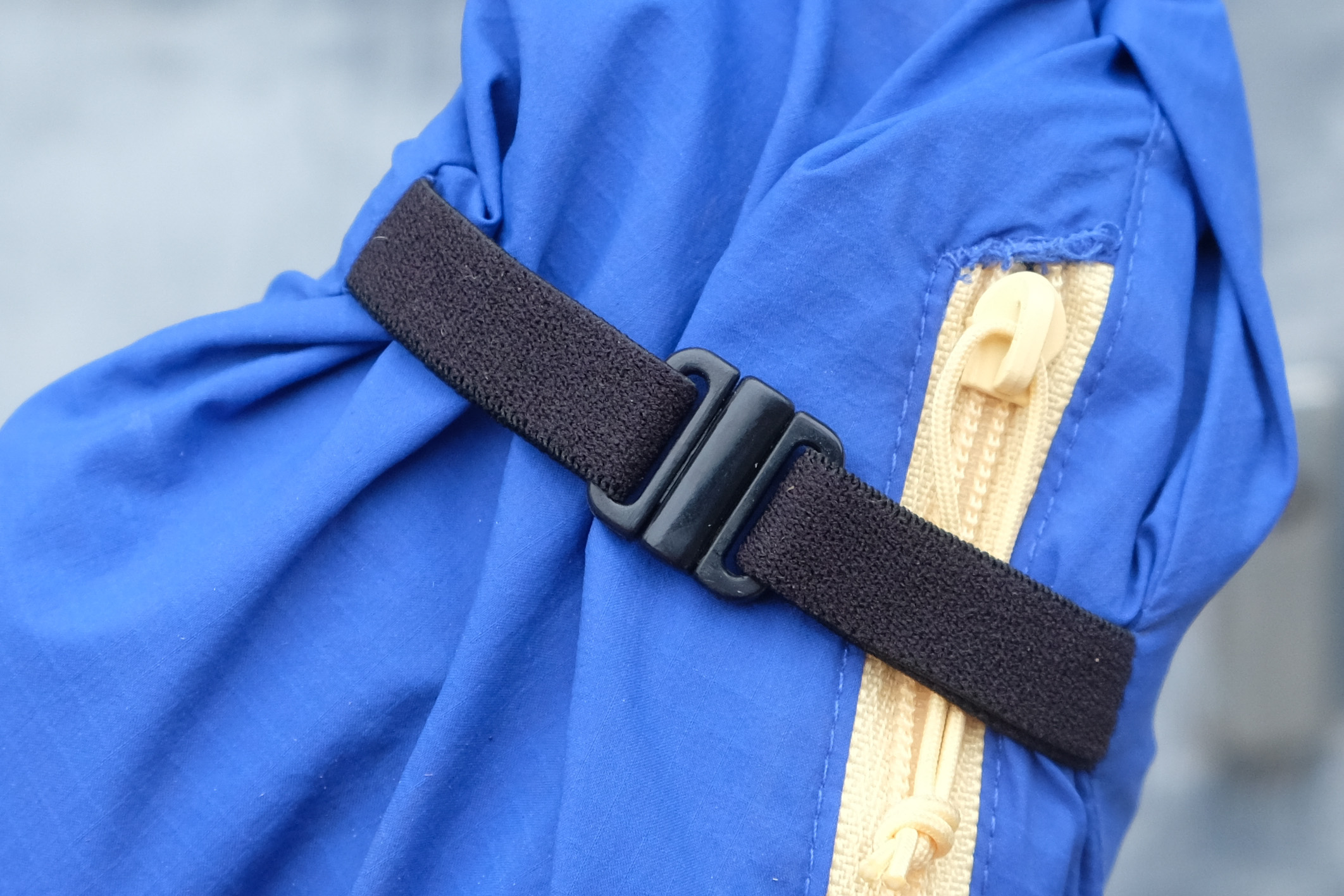 One of the best things about the 7mesh Northwoods Windshell is the pocket. On the left hand side, set slightly back from your ribcage, it can hold a heavy mobile phone without hanging forward or adjusting the fit of the jacket. It seems the position and the size of this pocket have been perfected to carry items out of the way. Even with a backpack on, it sits perfectly in the gap between pack and straps. This pocket doubles as a stash for the jacket to attach it to your bike, achieved by hooking two plastic clips together. I’ve tried several frame-mountable jackets, and this is the only one I’ve actually strapped to my bike, possibly because the stash pocket is large enough to make the item go quite flat, and the straps aren’t a faff. Some packable jackets turn into a bulky round shape that gets in the way on your bike, but this doesn’t.