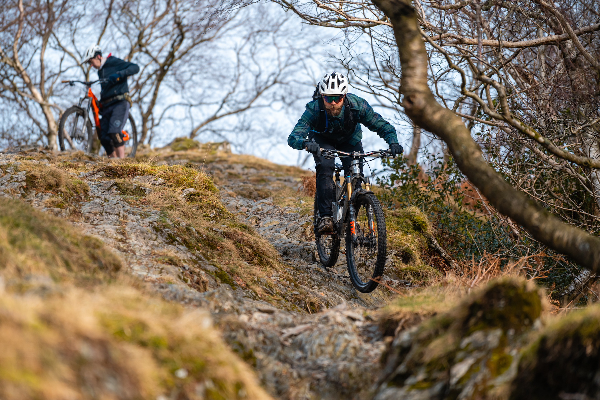 We set off for Ashness Bridge with glee. Even though Max, Richard and I have lost count of the number of times we’ve ridden The Bash, like all the very best trails, it’s still engaging and offers scope for finding new lines or nailing ones you messed up last time. I’m reminded of the time some friends came here for their first ride in the Lakes. Although comfortable with trail centre reds and blacks, they were utterly baffled by the myriad tracks and line options presented to them, and although I offered them a token gesture of sympathy, I was quick to point out that this line choice and variety is all part of the fun.