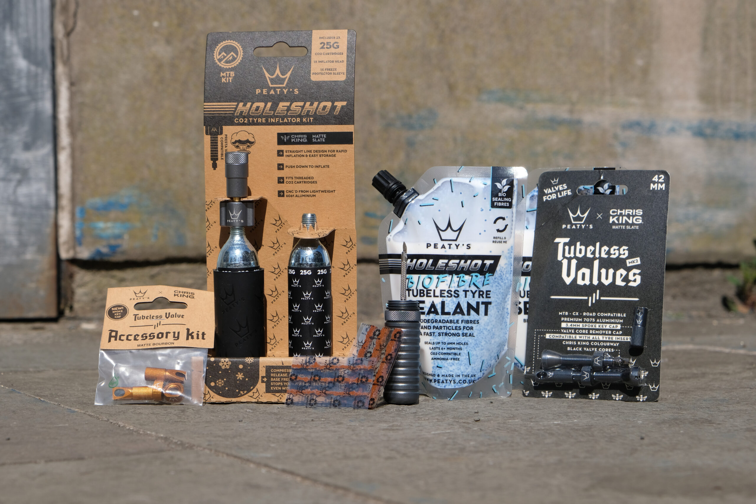 - Price: £7.99 (X Chris King Tubeless Valves Accessory Kit), £34.99 (CO2 Tyre Inflator Kit), £24.99 (Tubeless Puncture Plugger Kit), £7.99 (BioFIbre Tubeless Tyre Sealant 120ml), £29.99 (X Chris King Tubeless Valves MK2), £19.99 (BioFibre Tubeless Tyre Sealant 500ml)