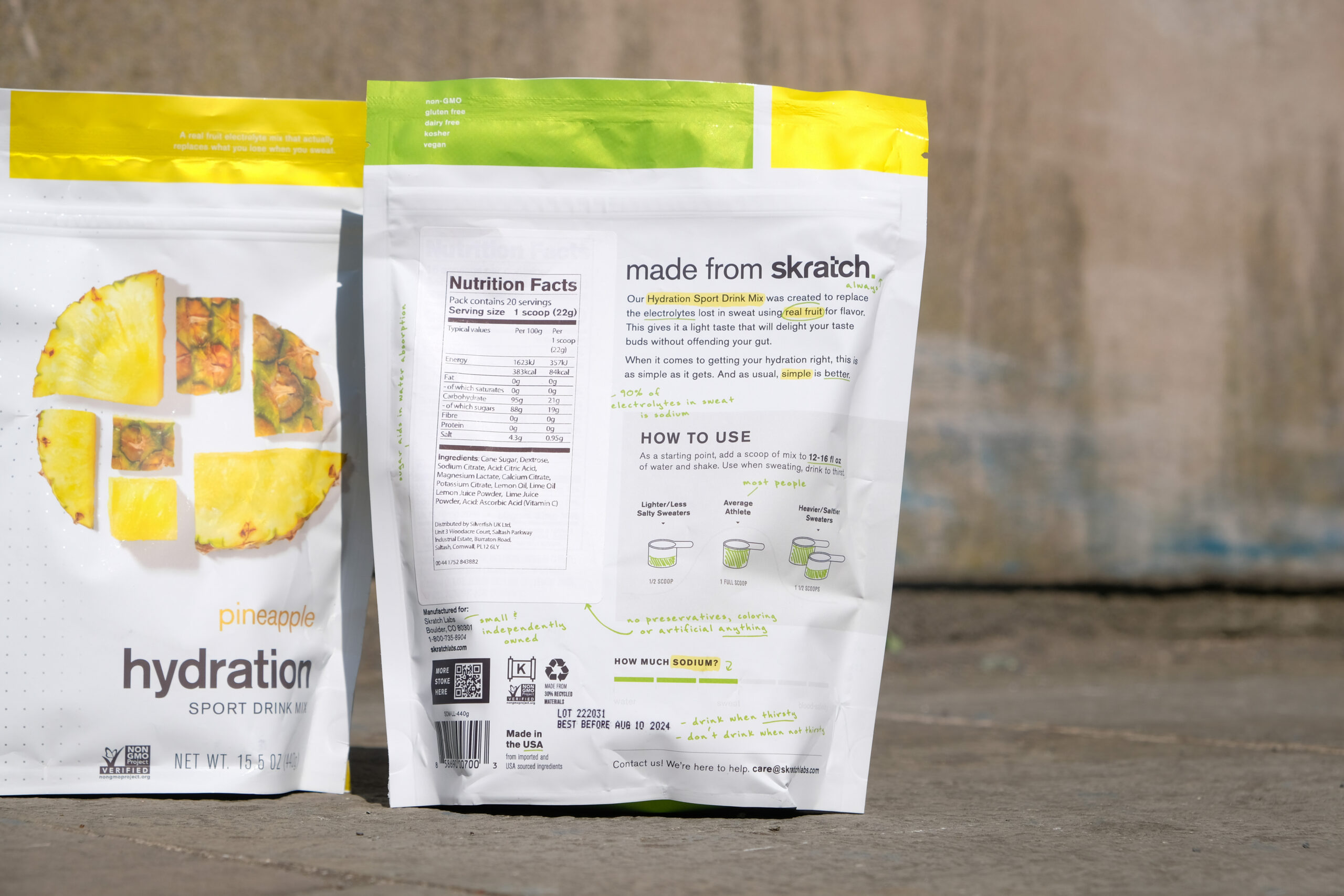 This is not your usual sport drink powder. Other conventional sports drinks are very sweet, fake-flavoured. Some don’t really replace what is lost through sweating very well either. This stuff claims to be a sports drink with less sugar (4% or 4 g per 100 ml) and a ratio of sugar (glucose + fructose) that is designed for faster absorption, an electrolyte profile that better matches what is lost in sweat (800 mg sodium, 80 mg potassium, 100 mg calcium, and 80 mg of magnesium per liter), and real fruit for flavour.