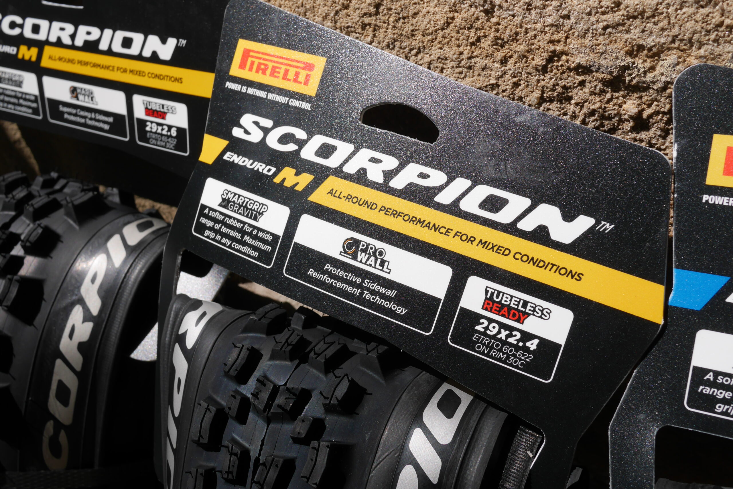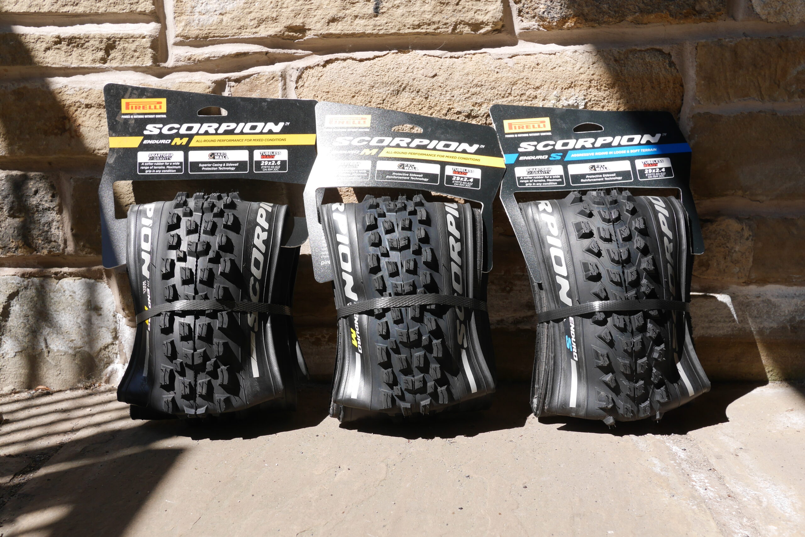 We’ve got a big bundle of Pirelli tyres in. BIgger than this mere trio. We’ve got a few for cross-country duties, a few for enduro racing and a few for your regular reliable trail riding. Pirelli’s mountain bike tyre range isn’t the easiest to quickly get your head around (them ALL being called “Pirelli Scorpion” is the main odd thing) but we’ll do our best to simplify things in an upcoming article. Pirelli are certainly offering something different to The Usual Suspects. Watch this rubbery space…