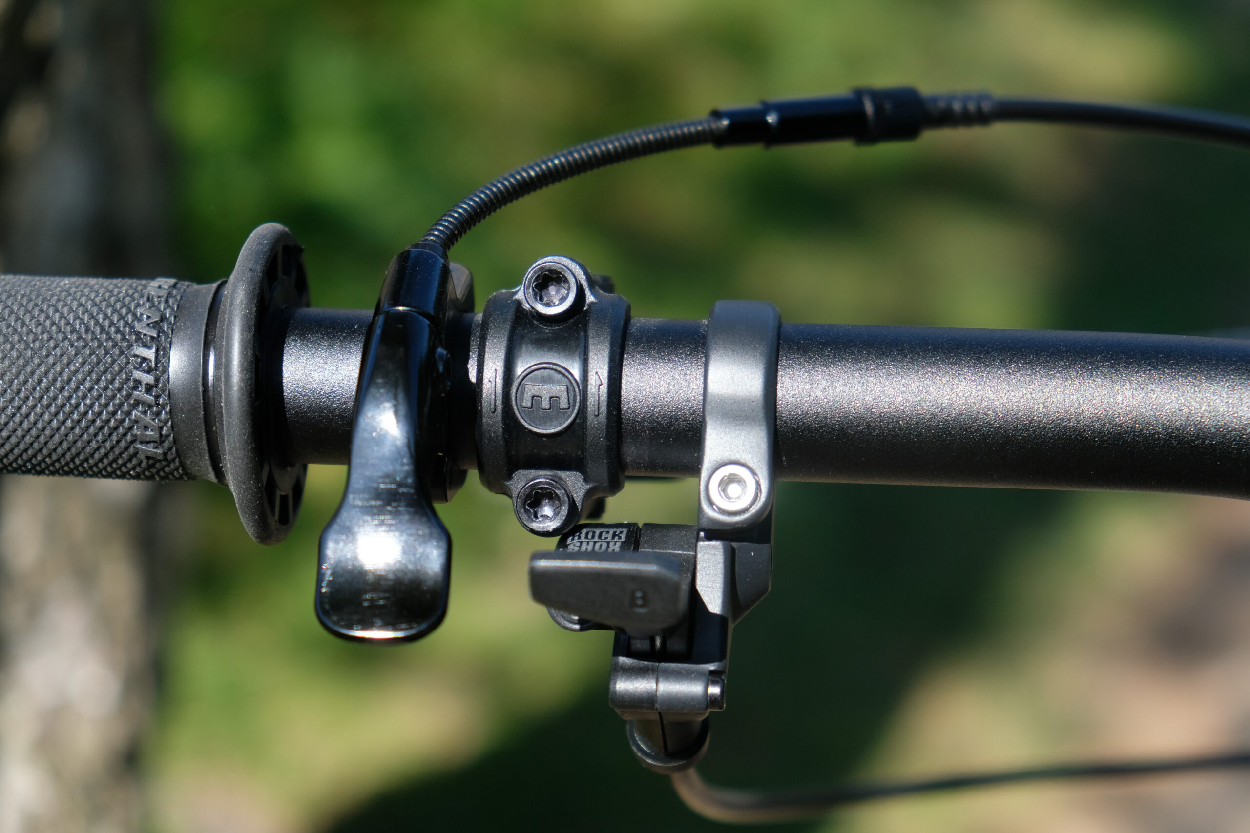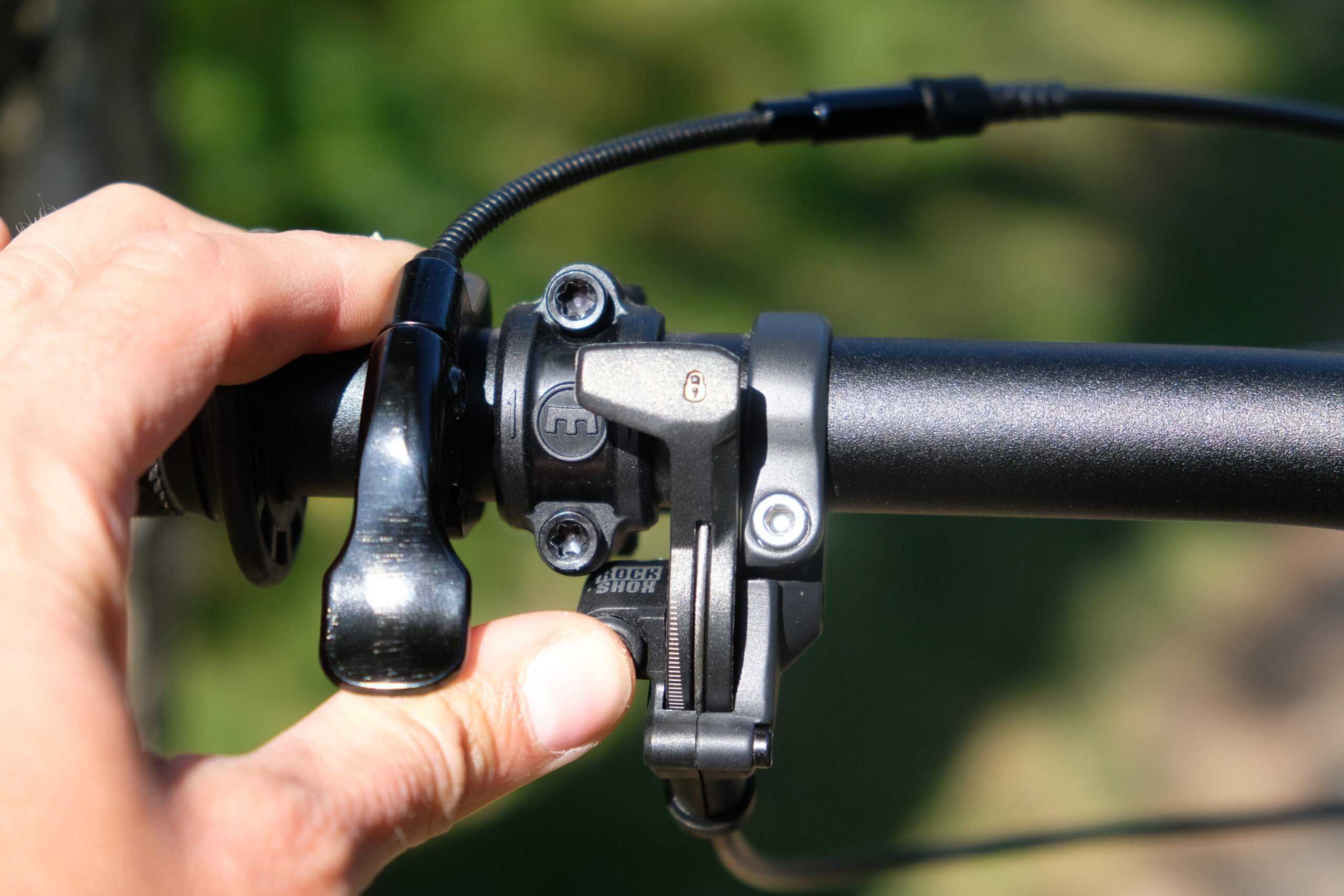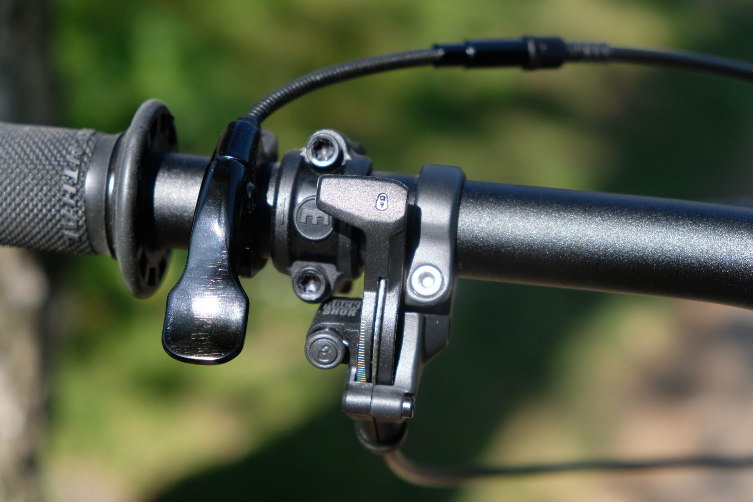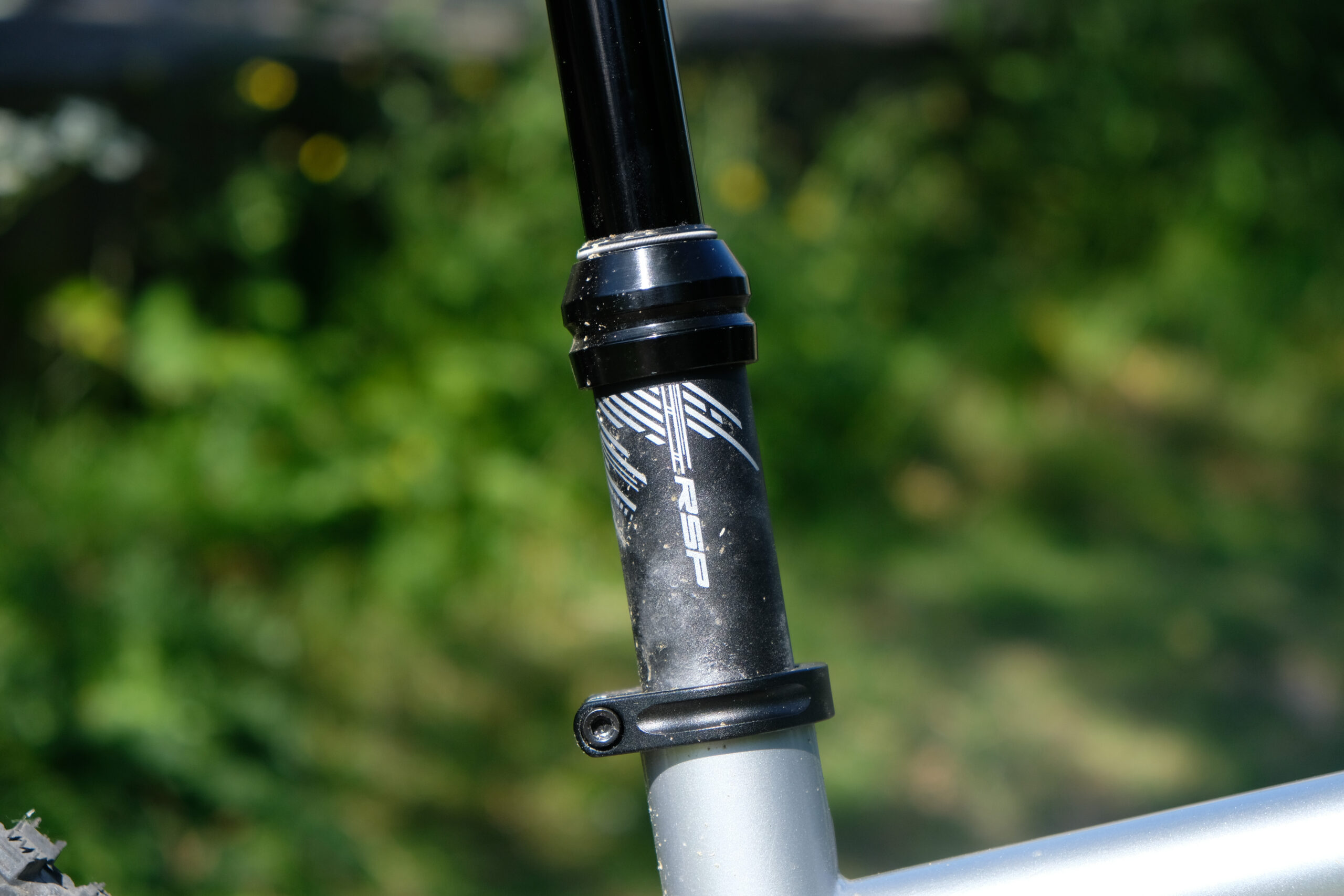 The RSP Plummet Stealth dropper has 125mm of travel, cable actuation and a very small and rather un-ergonomic lever. The button is quite small and takes quite an intentional press down, however the post itself is really smooth and reliable. There’s no rotational play in it, and it really seems like a perfectly good component just with a lever that doesn’t suit me (which could be changed easily enough).