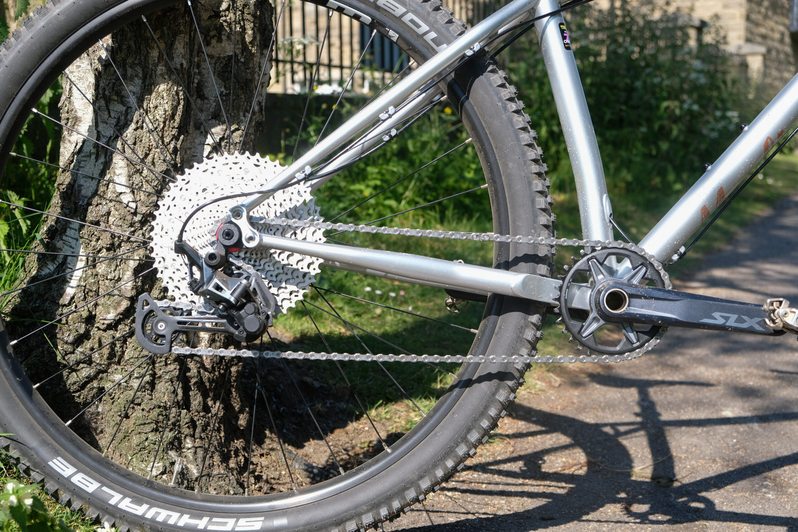 The spec on this Merlin Malt 725 SLX model is the most budget build in the range. 12-speed Shimano SLX groupset with a Sunrace cassette puts it close to the bottom spec of Shimano groupsets. The WTB STi30 rims are an XC/trail aluminium rim that I find to be strong yet quite heavy and characterless, so no complaints but also no great ride quality increase from them.