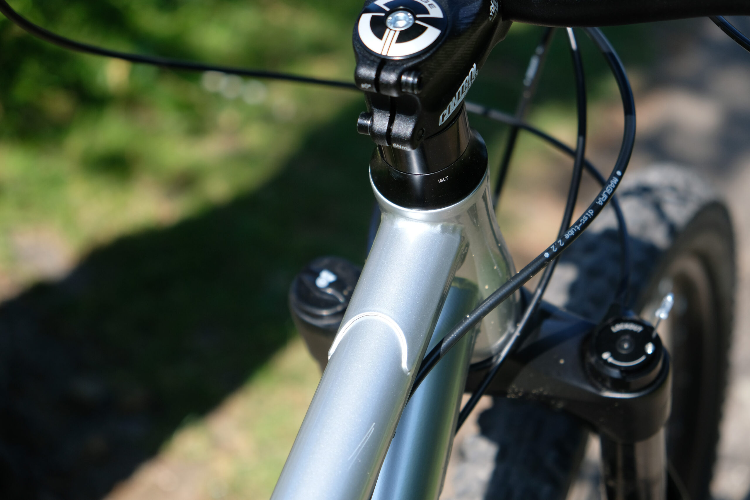 Being able to lock-out the 120mm fork is a great addition to a short travel hardtail, especially one that lends itself more to touring than trail bashing. I say it lends itself more toward touring because the 71.5° seat angle paired with the 67° headangle put you more upright than most modern mountain bikes. It’s not a playful, forgiving bike. It’s a bike that will get you from A to B.
