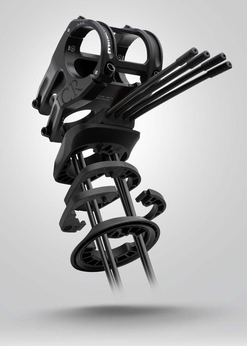 The stem is CNC-milled from AL 7075 in Germany. It comes in 2 colors: Midnight Black and Raw. All other parts of the cable routing system are made of glass-fiber reinforced PA (Polyamide) in cooperation with Acros. We know what you are thinking: Plastic?! This will break. That’s a common misconception. Polyamide is an extremely functional material with many benefits. It is lightweight, and – when reinforced with glass fiber – extremely robust and durable. Of course, the entire system was tested to the bone & it easily passed all industry-required tests. The Sixpack ICR system is approved for ASTM category 5, the highest category of riding.