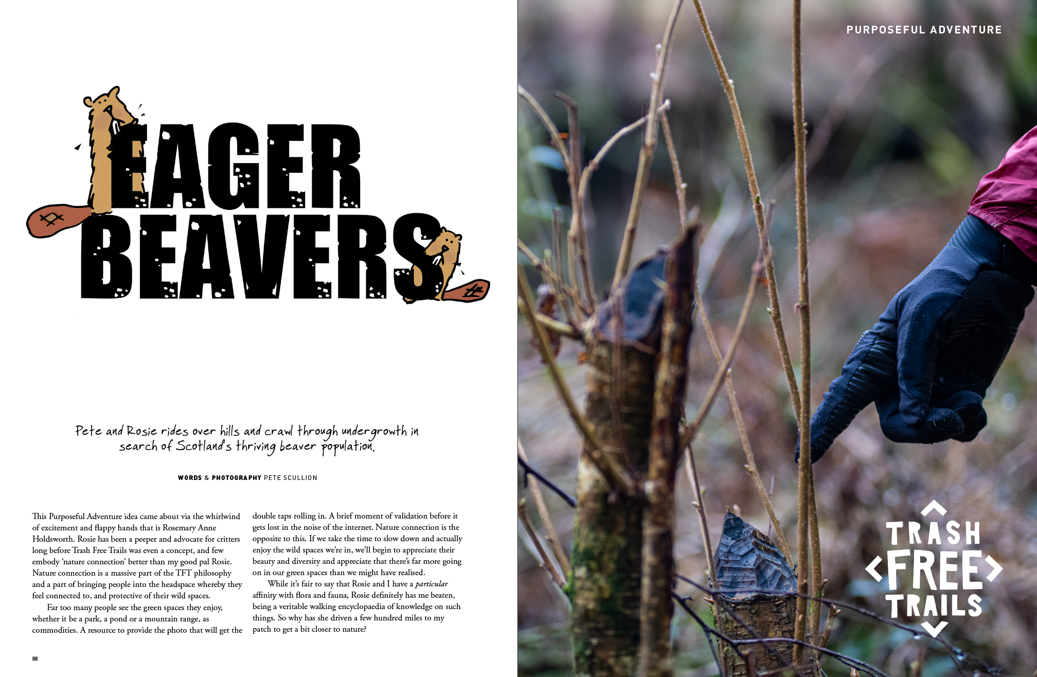 Pete Scullion and Rosie Holdsworth ride over hills and crawl through undergrowth in search of Scotland’s thriving beaver