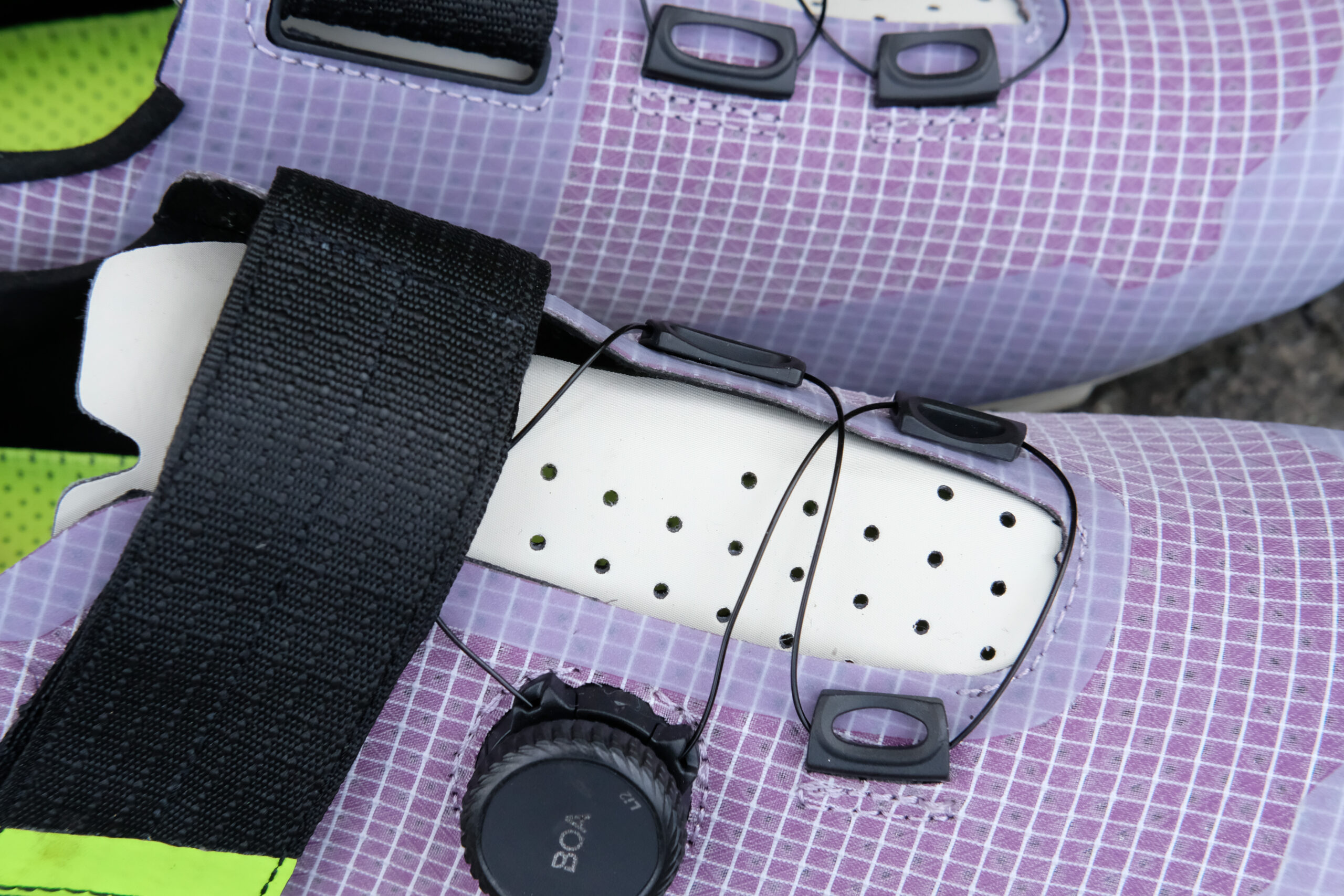 These are aimed at the ‘serious off-road racer’, as they’re super lightweight yet tough. There’s excellent walking grip, stiff carbon soles, rubber tread, a secure top strap and BOA closure system, and they’re the prettiest shoes in the building. That last part is Amanda’s opinion, not actual fact.