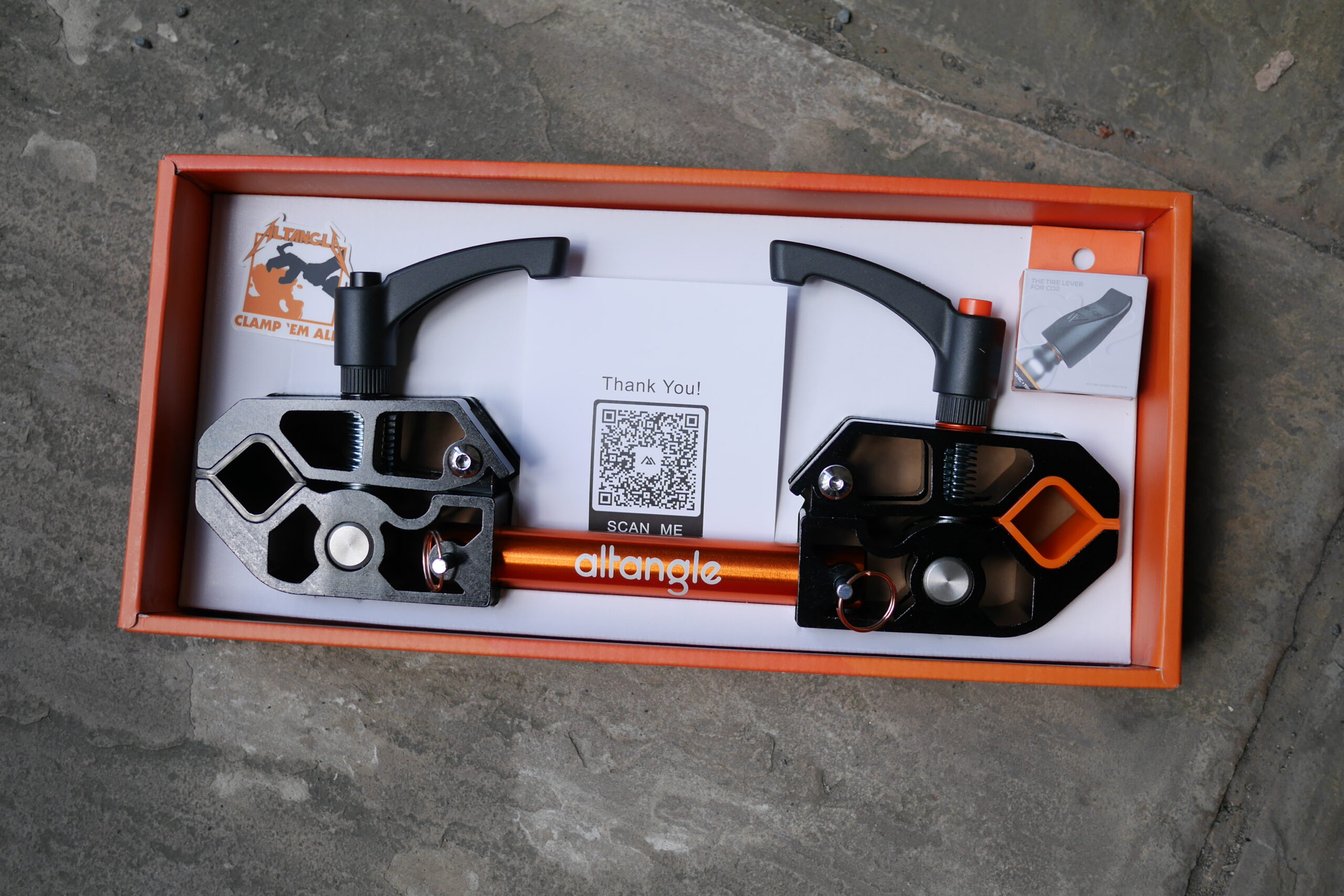 We first saw this rack at Sea Otter a couple of years back and thought it looked like just the thing for keeping in the car or van so that you’ve always got a proper bike rack to hand. Mechanical mishaps away from home are frustrating enough without having to balance your bike against a bench or dangle it from a tree to work on it. Weighing 3lbs and claiming to clamp to almost every surface – from round gazebo uprights to flat table tops. Hannah was planning to attach it to the hand rail on her van, and has now added that to the list of things she’ll try when she has two working arms. Not that she’s sulking.