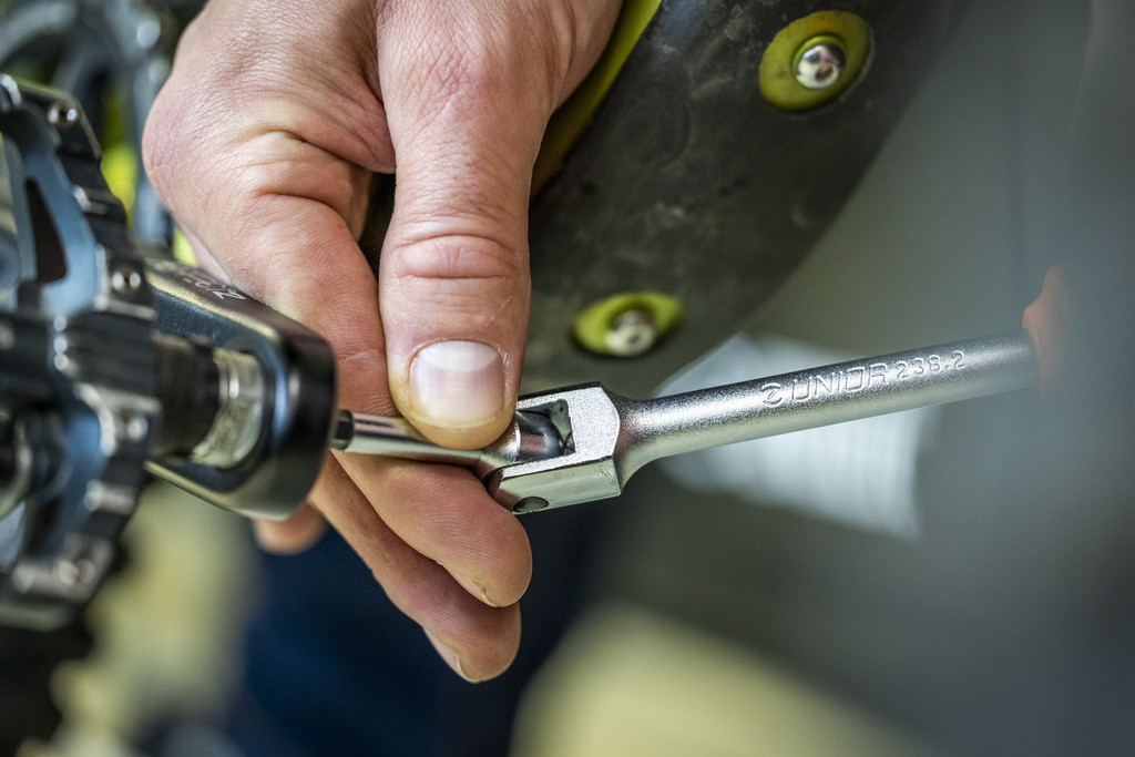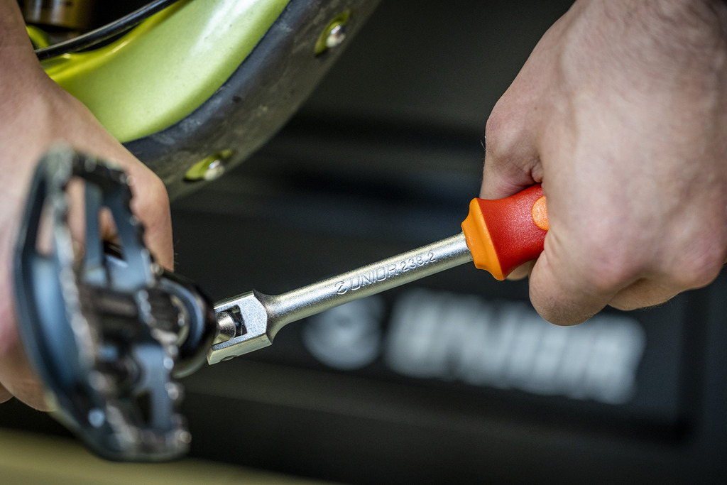 Speed Pedal Wrench, the ultimate tool for effortless pedal removal and installation with maximum efficiency and convenience. Thanks to a swivel handle, this wrench allows for versatile positioning and usage at different angles. When you need to apply greater force, simply position it at a 90° angle for enhanced leverage. For rapid spinning and quicker pedal removal or installation, position the handle at 0° and rotate the wrench.