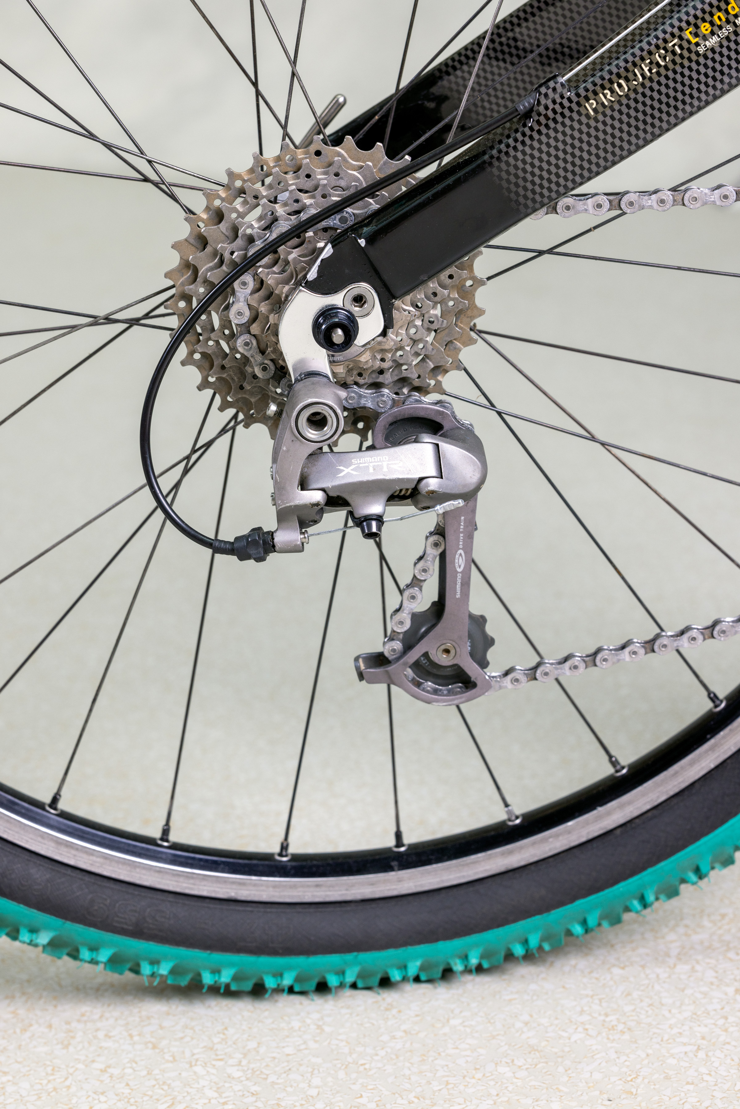 All internal cables run into and through the downtube guided by secure mounting brackets. These can be accessed with ease through the battery door when the battery is removed.