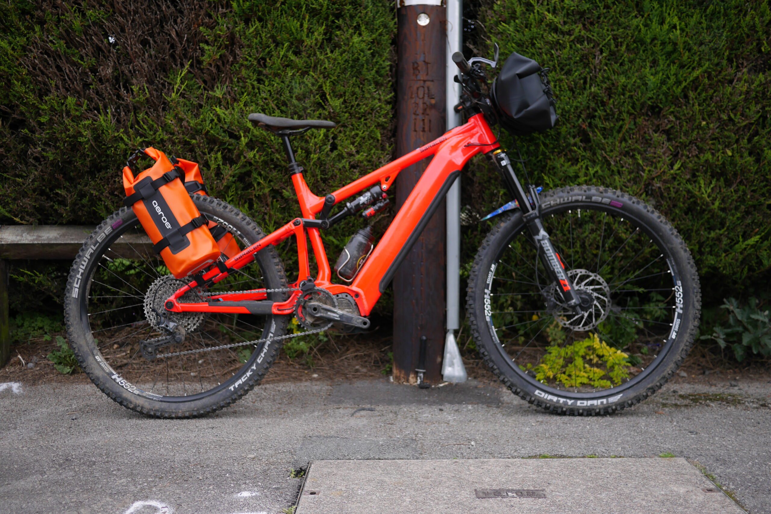 NZ bike luggage brand Aeroe has got themselves a new UK distributor so we’ve been duly sent a set of their flagship product(s) to have a go with. The basic idea with Aeroe stuff is that it fits avery and any bicycle. And isn’t insalet fiddly to install/remove. We chose one of the trickiest bikes to install the system on to: a modern full-fat full-suspension e-bike. And so far, so good. It went on no problem. All the nuts are generally captured (so you can install it without a helper, or too much swearing) and there’s nothing scratchy metally against the frame. There’s some fine-tuning still to be done (this set-up was mainly for FGF pics) but we’re impressed thus far. We’ll let you know how it handles being used in the wilds.