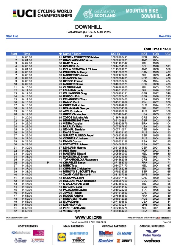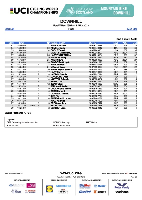 Alex Iscla-Grandvallet gets a brief sit in the top spot, having apparently ridden on a Forestal ebike without the motor… he’s knocked off the seat by Canada’s Forrest Riesco. Great name for a mountain biker.