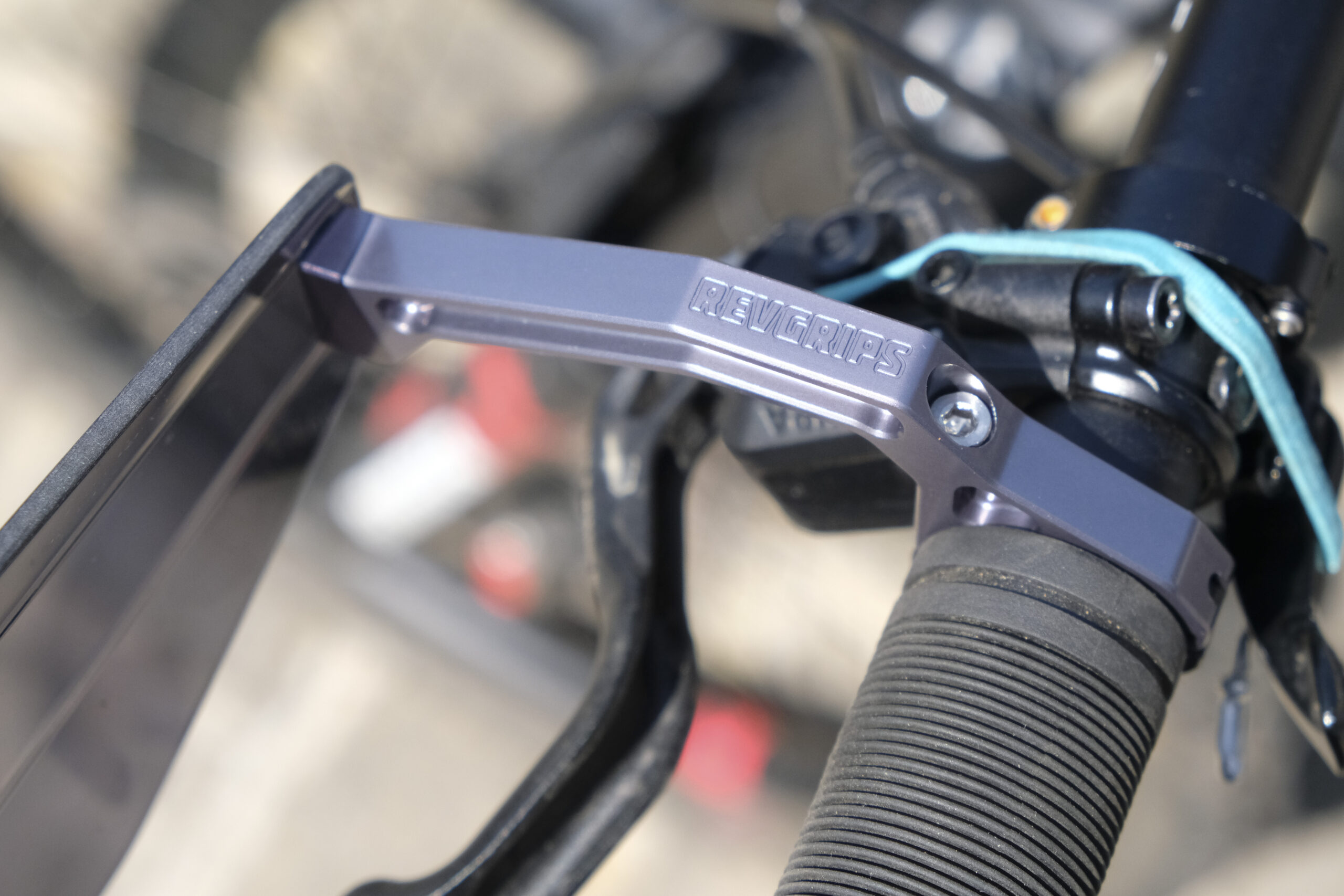 Speaking off on-and-off-ability, these Revgrips Handguards have hinged clamps with 3mm Allen key bolts and have proven to be impressively quick and simple to remove from one bike and install on another. Kinda like swapping a favourite pair of pedals from one bike to another.