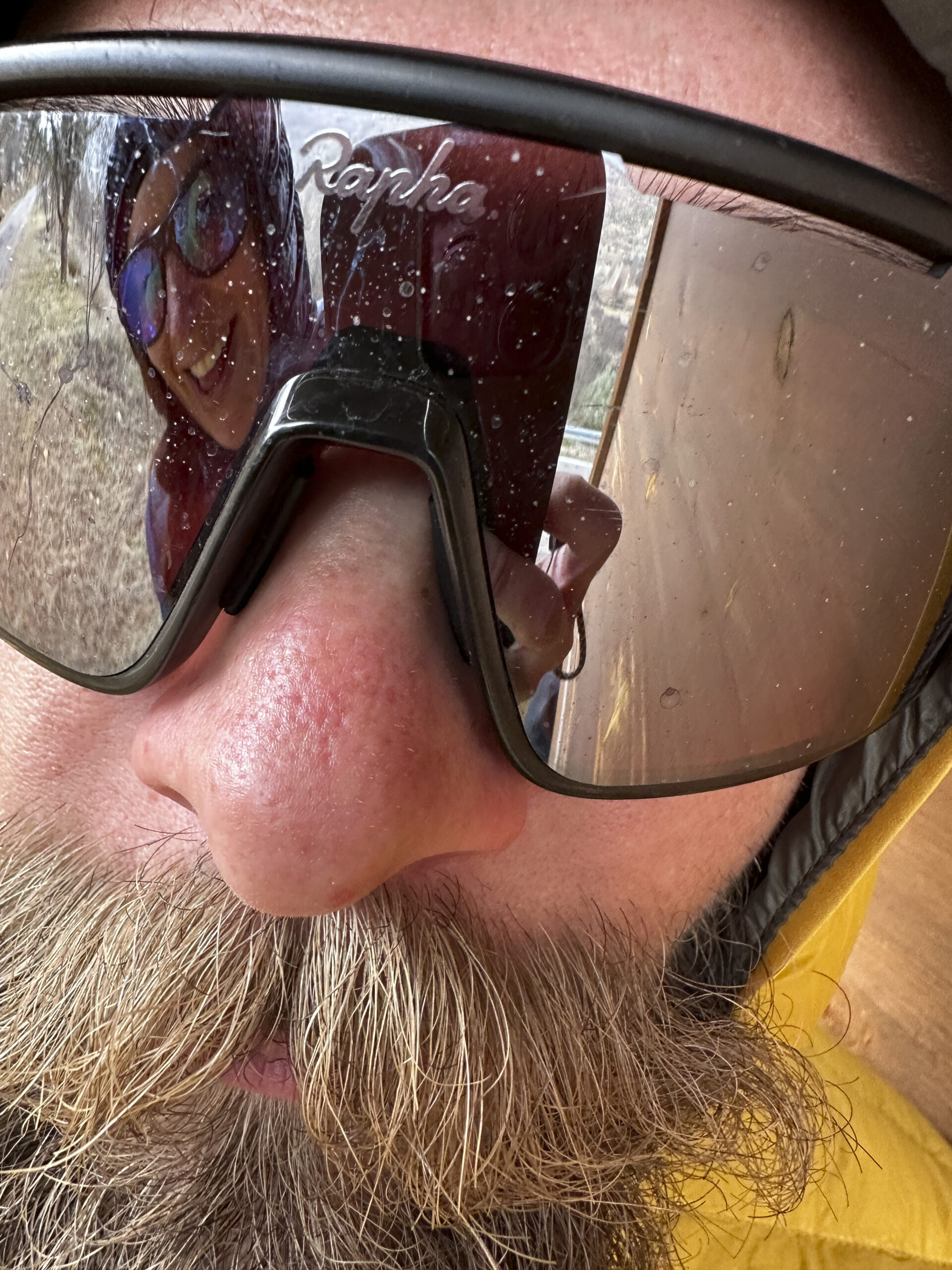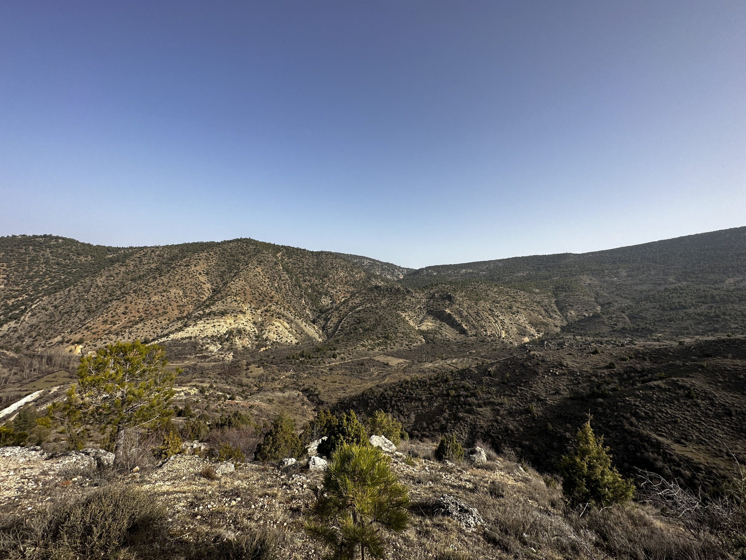 I do some rolling maths and calculate that I have loads of time to play with. That is a summarised version of about 15 minutes worth of ‘he’s adding 18km on, 9 of them are uphill, 9 of them will be freezing cold…’ and so on. I’m confident I can take my sweet time getting to the town we’re meeting in, and I take every opportunity to stop and enjoy the view of the valley below, gradually getting smaller as I climb away from it.