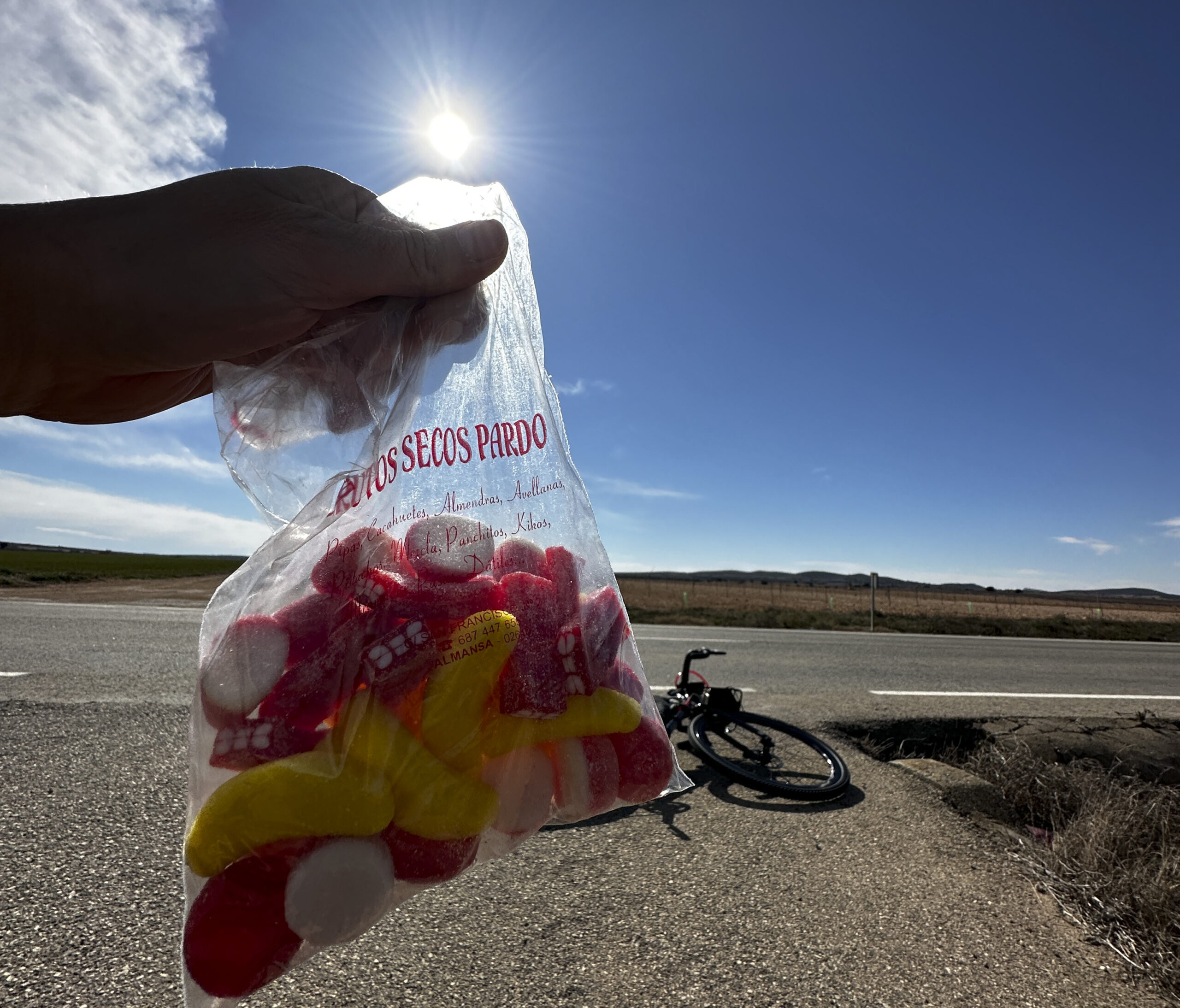 For the most part, today has been remote and peaceful. Not even a goat to break the silence, and certainly no freehub sound as we’ve had to keep our legs spinning, and finally we have Almansa in sight. Reeling it in with what’s left of my willpower, buses pass us, there’s cars shooting out of side roads and junctions that don’t immediately seem obvious as to who has right of way. I feel a bit like Leonardo Dicaprio in The Beach when he goes to the main land for a big shop. It’s busy, noisy, fast, and unexplained mood really doesn’t like it. We’ve got an Air B&B booked for two nights, with a plan to wash all our kit and chill out tomorrow, but it is a painful process getting hold of the key and takes us an hour to get from pavement to bed.