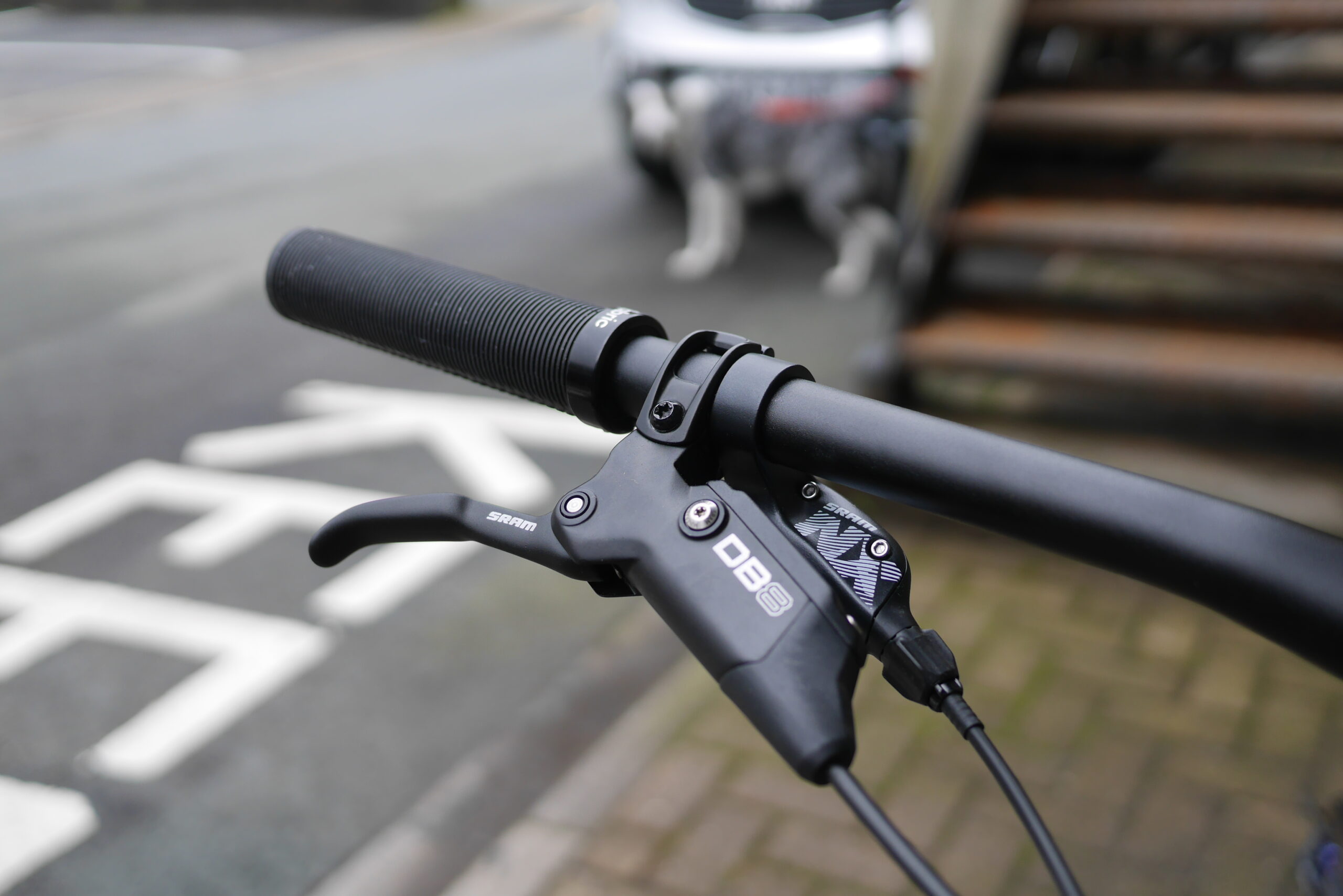The SRAM DB8 brakes were a pleasant surprise. Really nice consistent feel to them. Nice feeling lever blades. And filled with mineral oil, which is just real-world better than DOT faff. The DB8 brakes might not be as powerful as more expensive brakes but they’re more than adequate. You could always upsize a rotor or two in future to unleash more anchorage. And Praise Be they aren’t SRAM G2s.