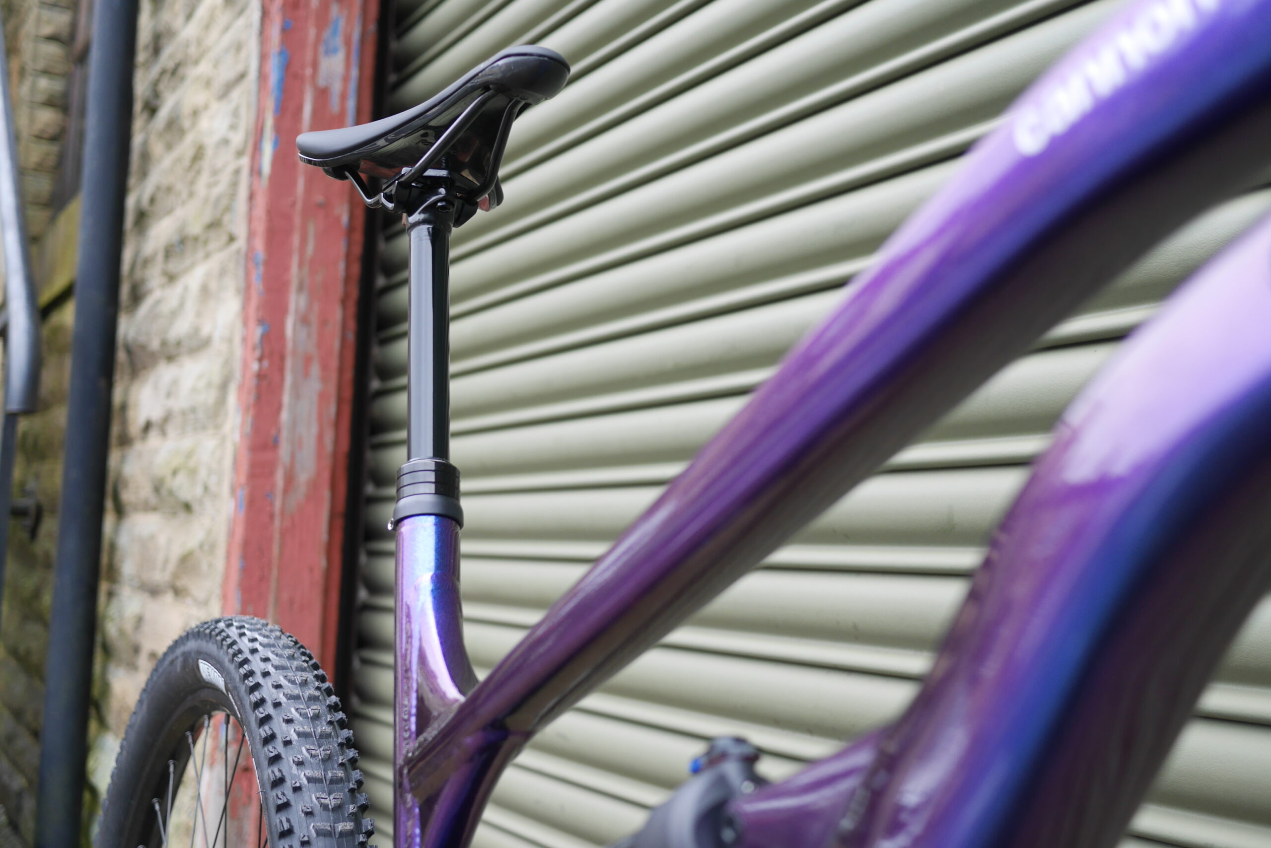 Geometry discussing time. It’s not perfect but it’s very good. The 65.5° head angle could be slacker without any issues. And the BB could be a bit higher because the frame has the wheelbase to cope. But overall, the numbers are better than most out there. The seat angle is genuinely steep at 77.5°. The head tube is suitably long (140mm on XL). The reach is great (an excellently whopping 515mm on XL). The chainstays are an okay length (445mm on L & XL). The standover is good (although the seat tubes are on the lengthy side so dropper insertion is not as much as you might think).