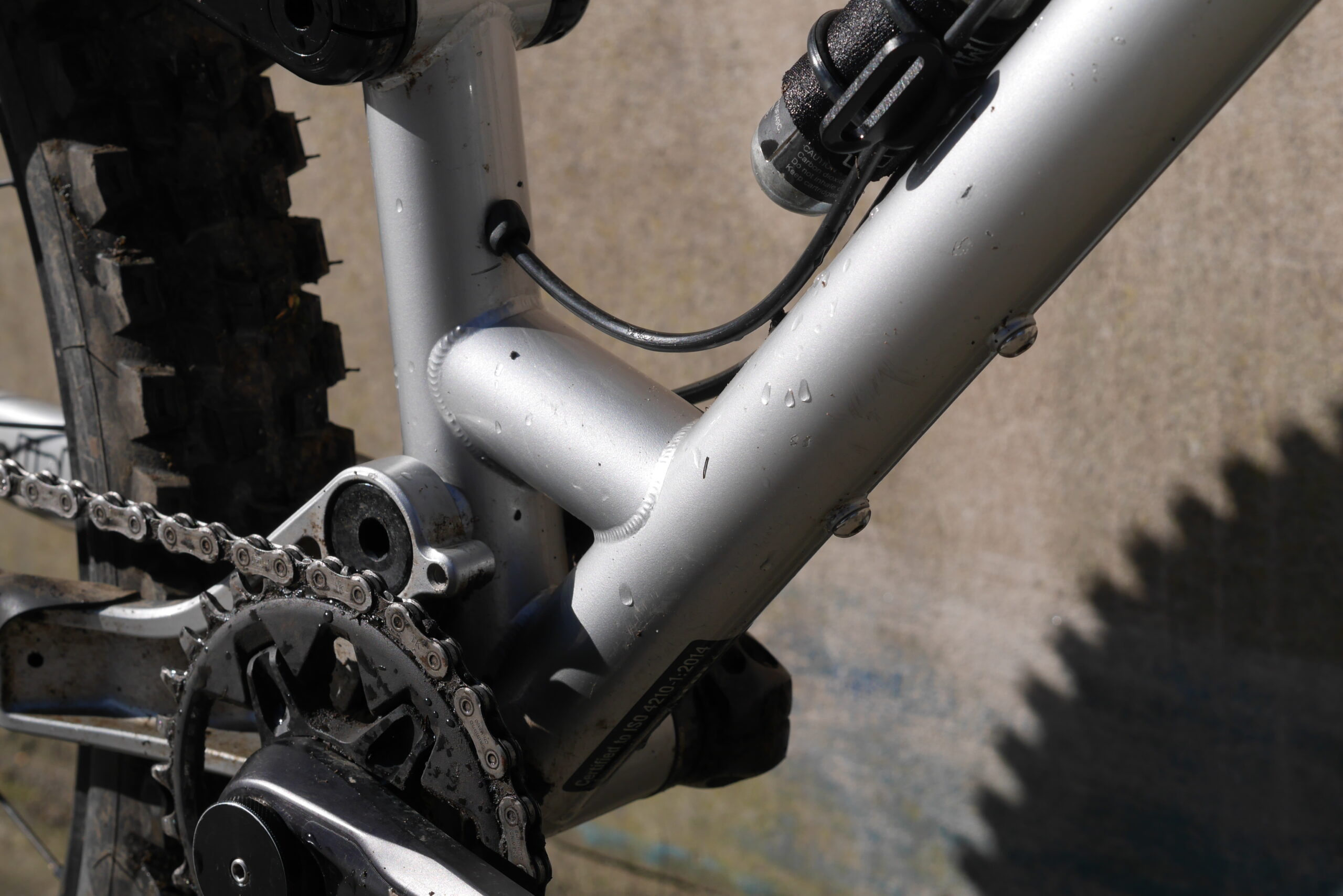 The main bosses under the top tube proved more than up to the job of holding decent-size water bottles, even with piggyback shocks. On this size C4 frame there is very probably more room inside the front triangle compared to the smaller sizes, so smaller riders may run into bottle issues especially if running piggyback shocks.