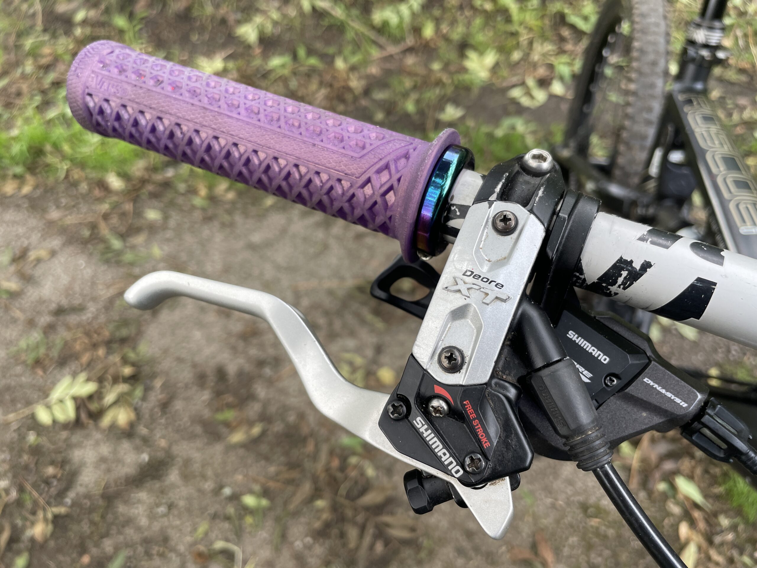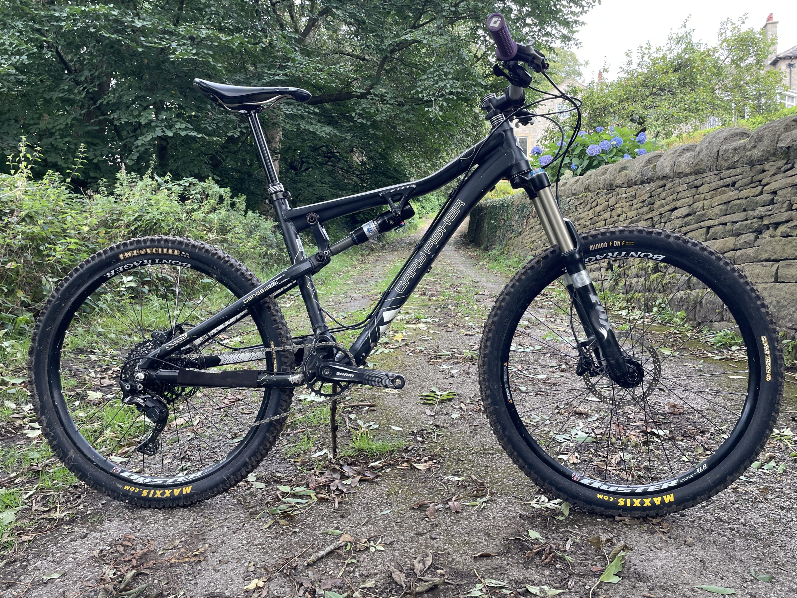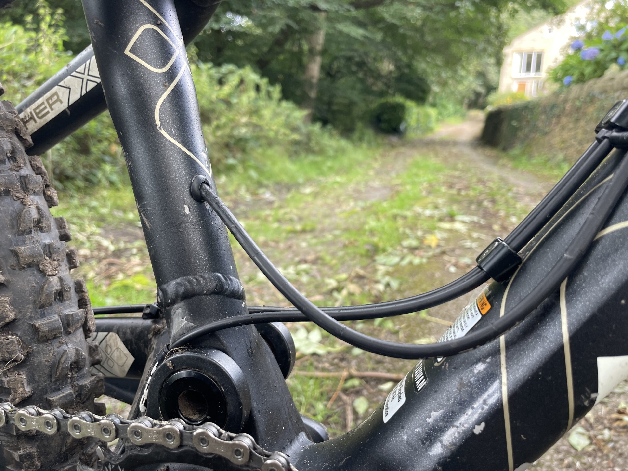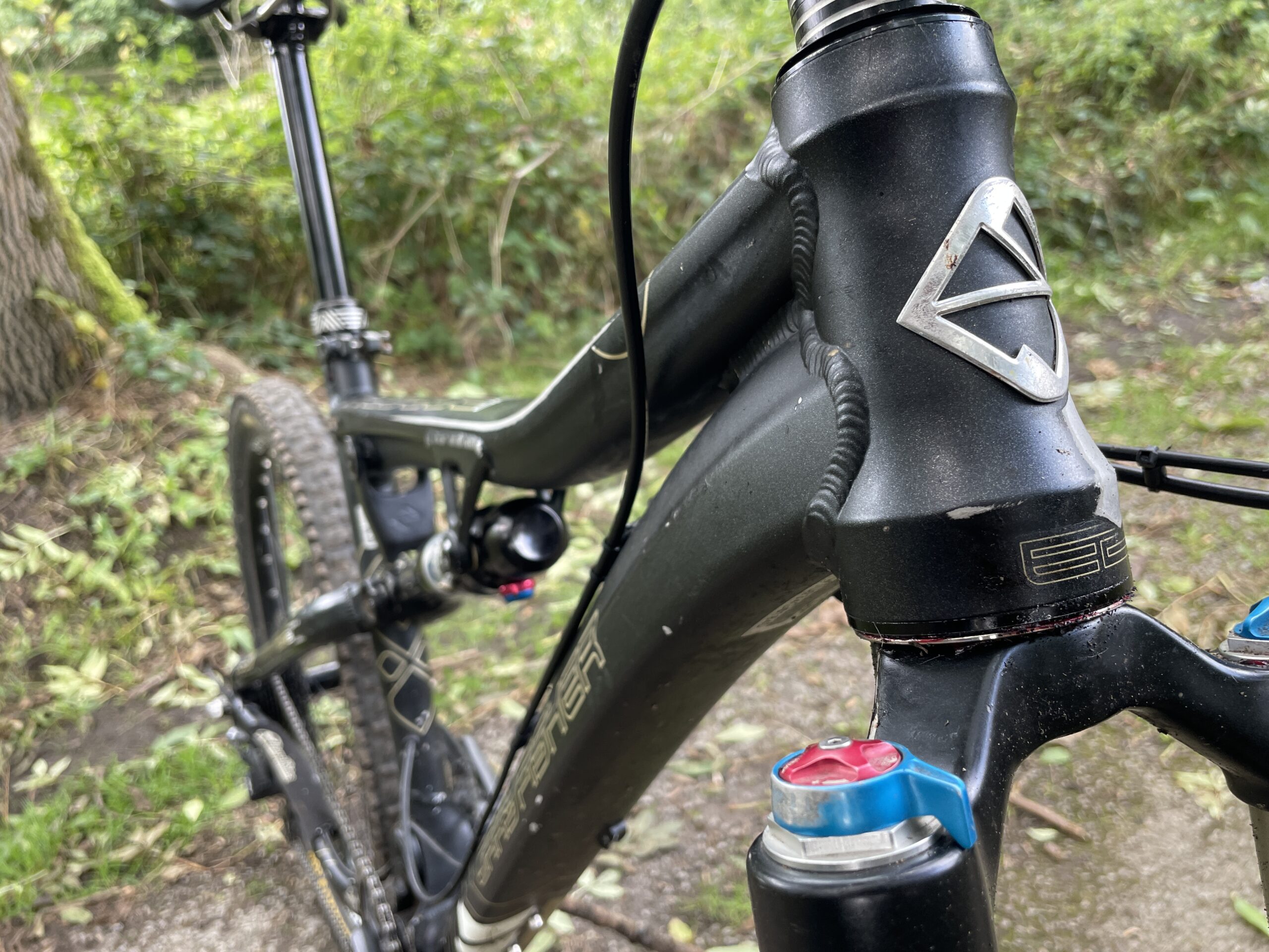 When it’s just about your 13th birthday and you go to the GT Malverns Classic only to discover that you’re a bit tall for your bike, but you happen to be there with one of the most stoked on bikes people you could ever meet… and then that person has the perfect sized frame donated to their shop… and some XT brakes in their personal collection just waiting for a bike… the result is this! Dieter (writer of Back From The Dead) with a little help from Fahzure, has done more to get Hannah’s Kid2 excited about bikes that Hannah has ever managed. Kid2 thinks Dieter is great. Hannah is waiting for Kid2 to request green hair dye. For now, he’s happy to have this BFTD Special, complete with excellent fonts on the tyres, newly installed stealth dropper routing, and bespoke engraved headset cap. Kid2 says ‘what this bike needs, is stickers’. Hannah thinks it needs purple pedals. We’re off to play in the woods.