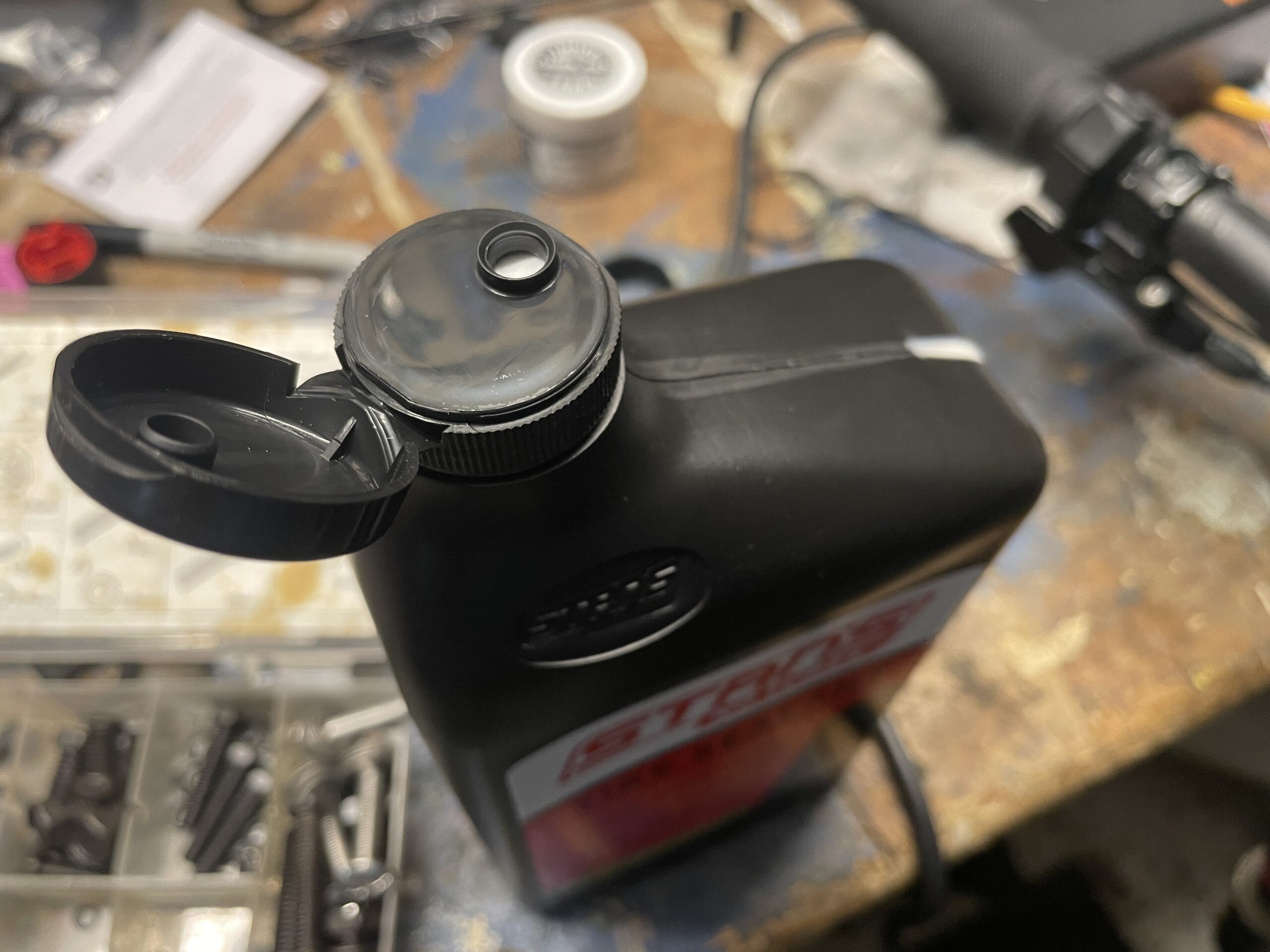 Stan’s Sealant is still the benchmark for sealants. There are newer, fancier ones out there now (including Race, from Stan’s itself) but the original, in this case, is still the go-to for many riders. Though you would have thought that they’d have engineered the hole in the lid to line up with the edge of the bottle. It’s been consistently wonky like this for a decade.