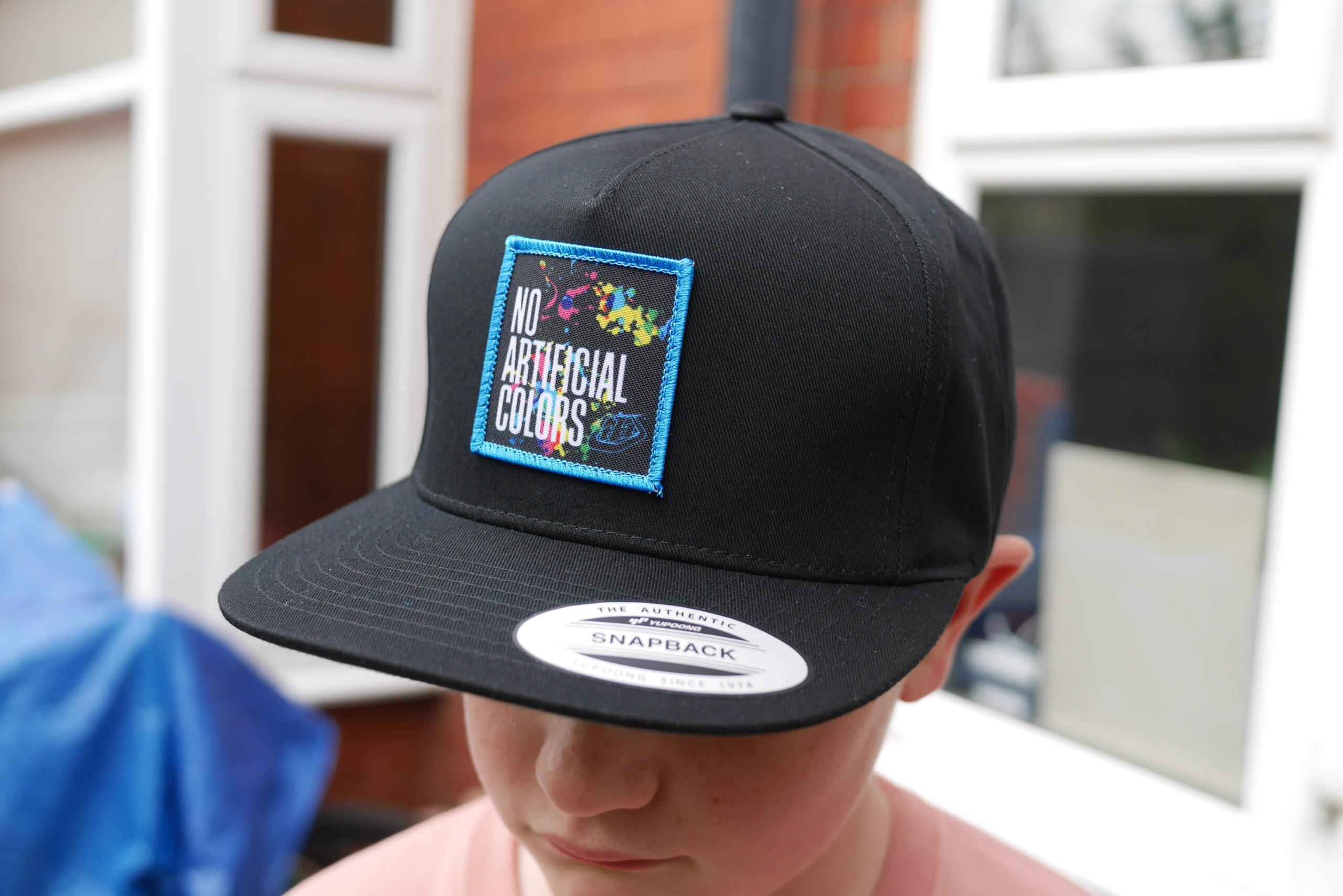 Part of a collection marking 40 years of Troy Lee Designs. 60/40% cotton and polyester. Snapback for fit. Mesh backing. Shamelessly overt No Artificial Colours badge is inspired by TLD’s early free-hand helmet paint jobs.