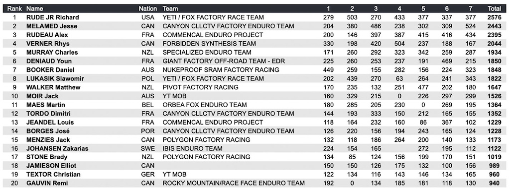 Rudeās third place would hand him his first UCI Enduro World Cup overall trophy to sit alongside the two Enduro World Series overall ones heās garnered in the past. Melamed would take second in the overall, whilst Alex Rudeau would claim third.